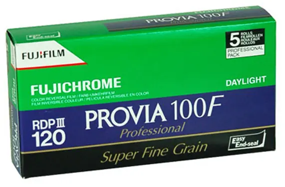 Fujifilm Provia 100F 120-filmi on diafilmi päivänvaloon. Sen tyyppi on ISO 100.