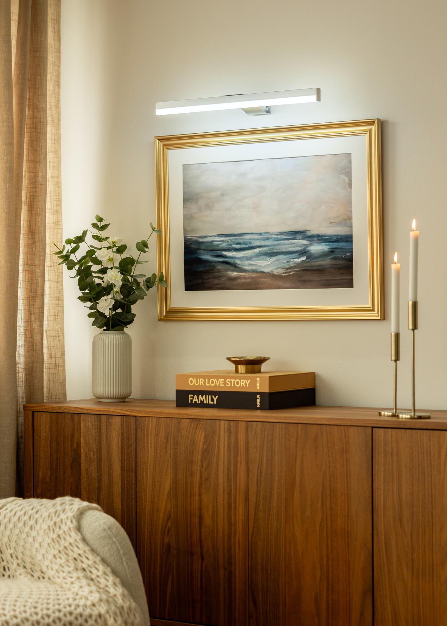 Tämä paristokäyttöinen tauluvalaistus tarjoaa kätevän ja joustavan ratkaisun taiteen valaisemiseen ilman johtoja. Paristokäyttöisen rakenteen ansiosta voit sijoittaa lampun minne tahansa, mikä tekee kotisi tyylistä ja elegantista valopisteestä yksinkertaista esimerkiksi taulun tai valokuvan yläpuolella. Lampun syvyys on 15 cm ja pituus 55 cm, joten se sopii täydellisesti valaisemaan kuvia, joiden leveys on jopa 80 cm.