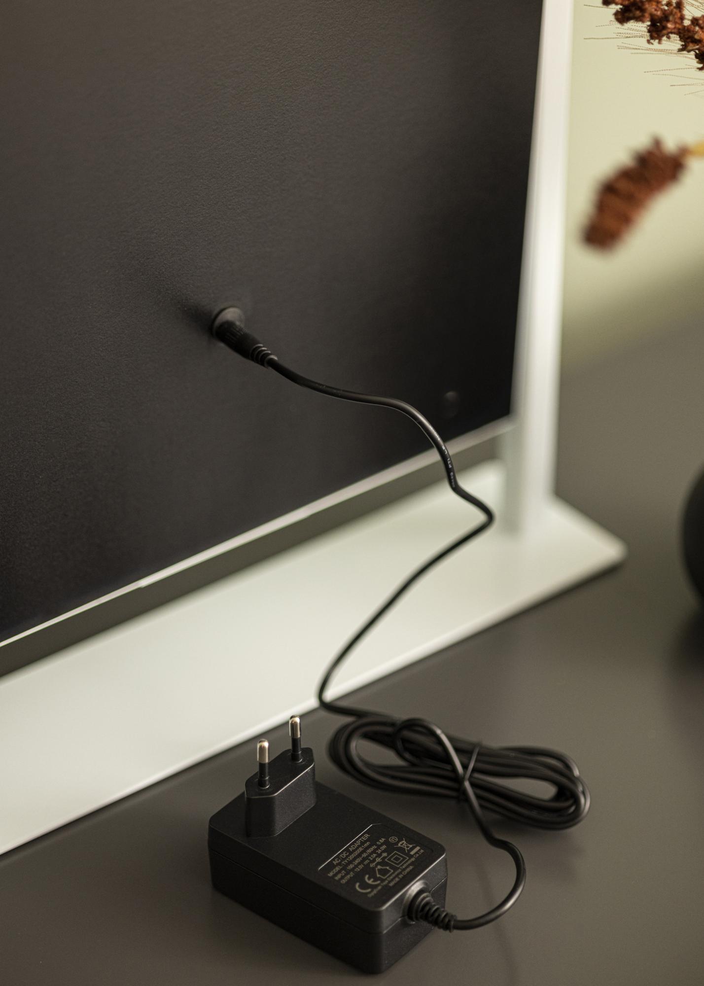 Peilin pystysuora muotoilu ja sen hienostunut valkoinen sävy tekevät siitä erittäinen tyylikkään, samalla kun sen älykkään rakenteen ansiosta voit kääntää peilipintaa haluamaasi asentoon. Peili on varustettu LED-valoilla: 12 lamppua ympäröi 30x41 cm:n kokoista peilipintaa. LED-valaistusta voi himmentää. Pidä peilipinnassa olevaa kosketusnäppäintä pohjassa muutaman sekunnin ajan valonvoimakkuutta säätääksesi. Peili liitetään pistorasiaan.