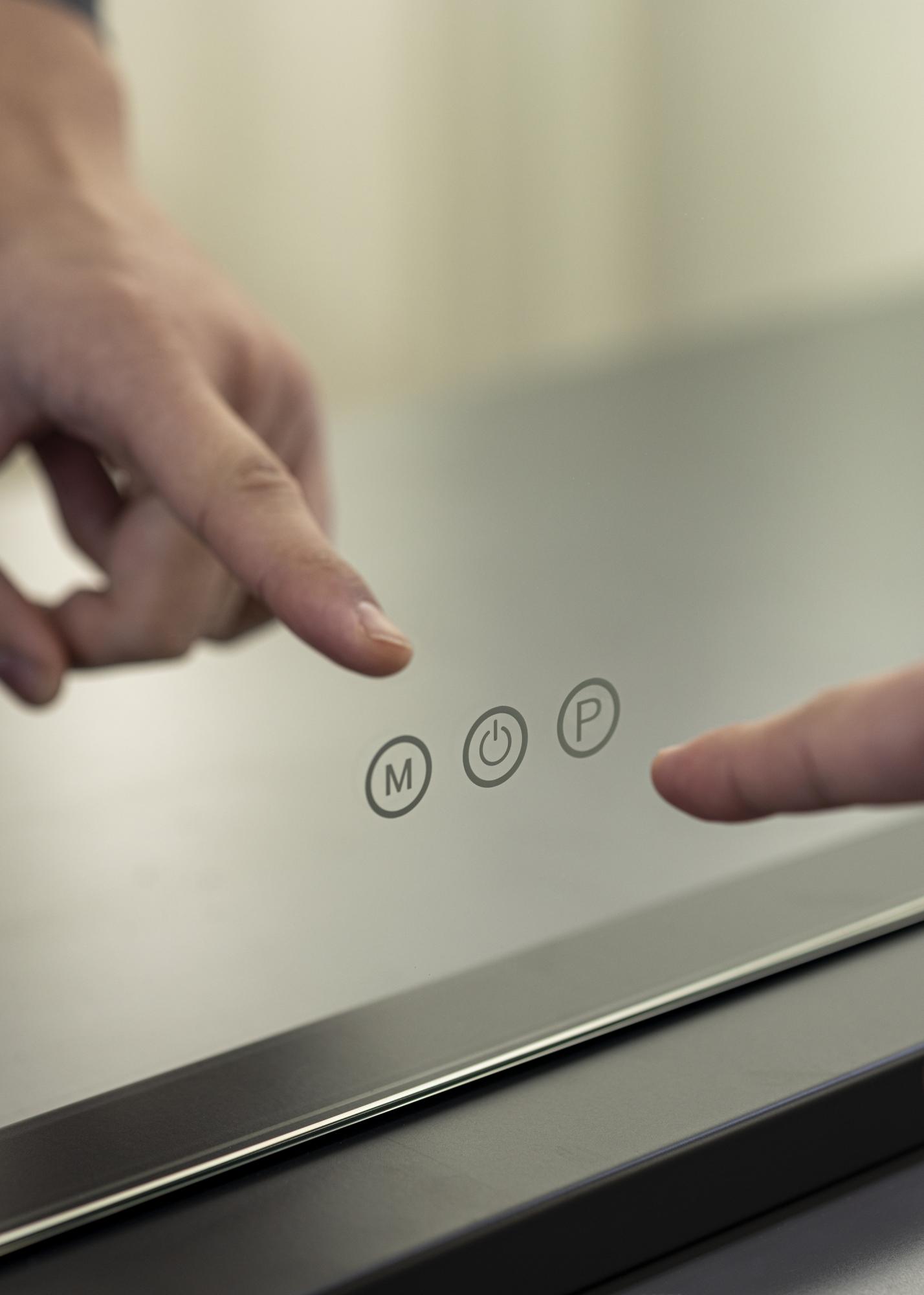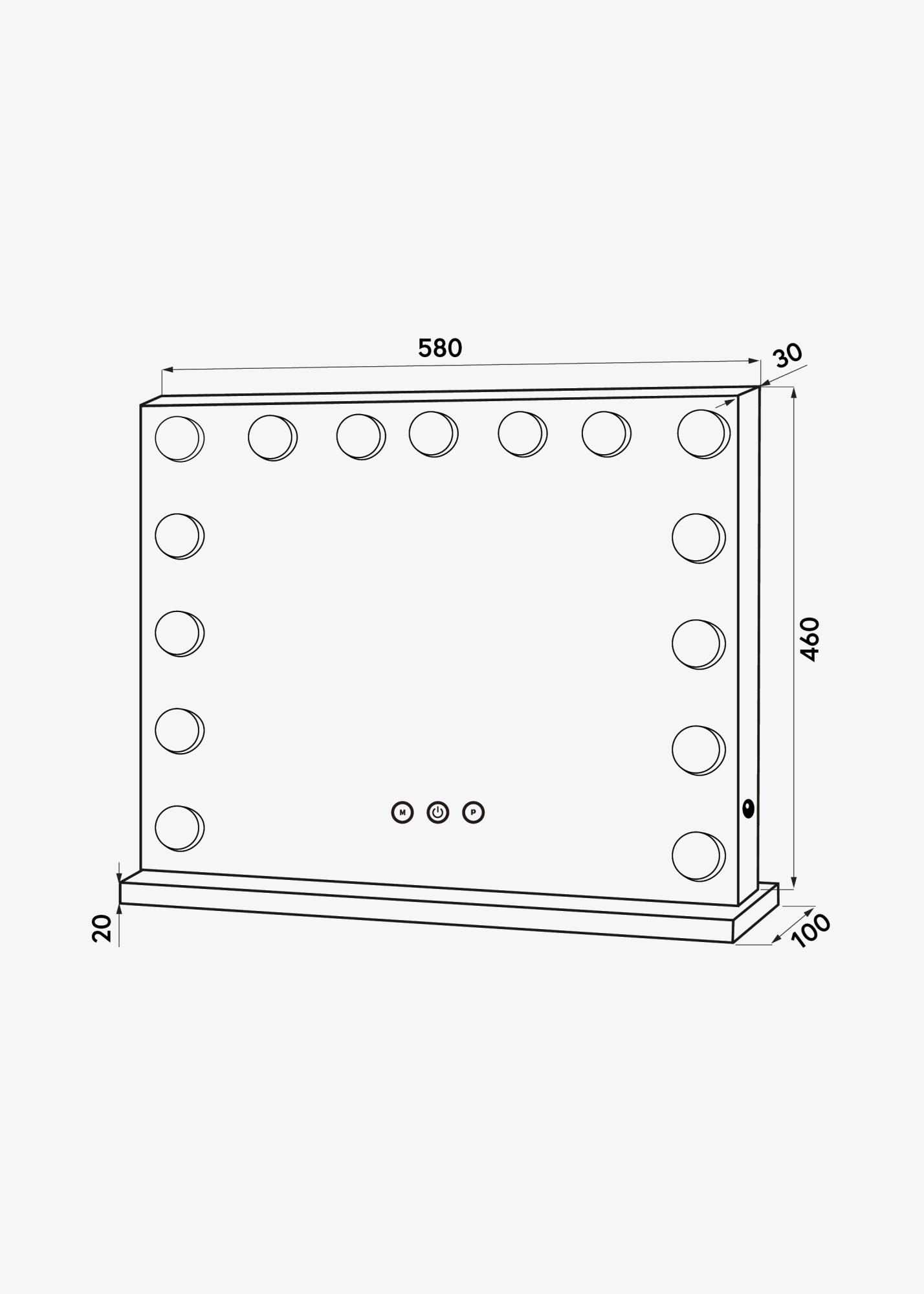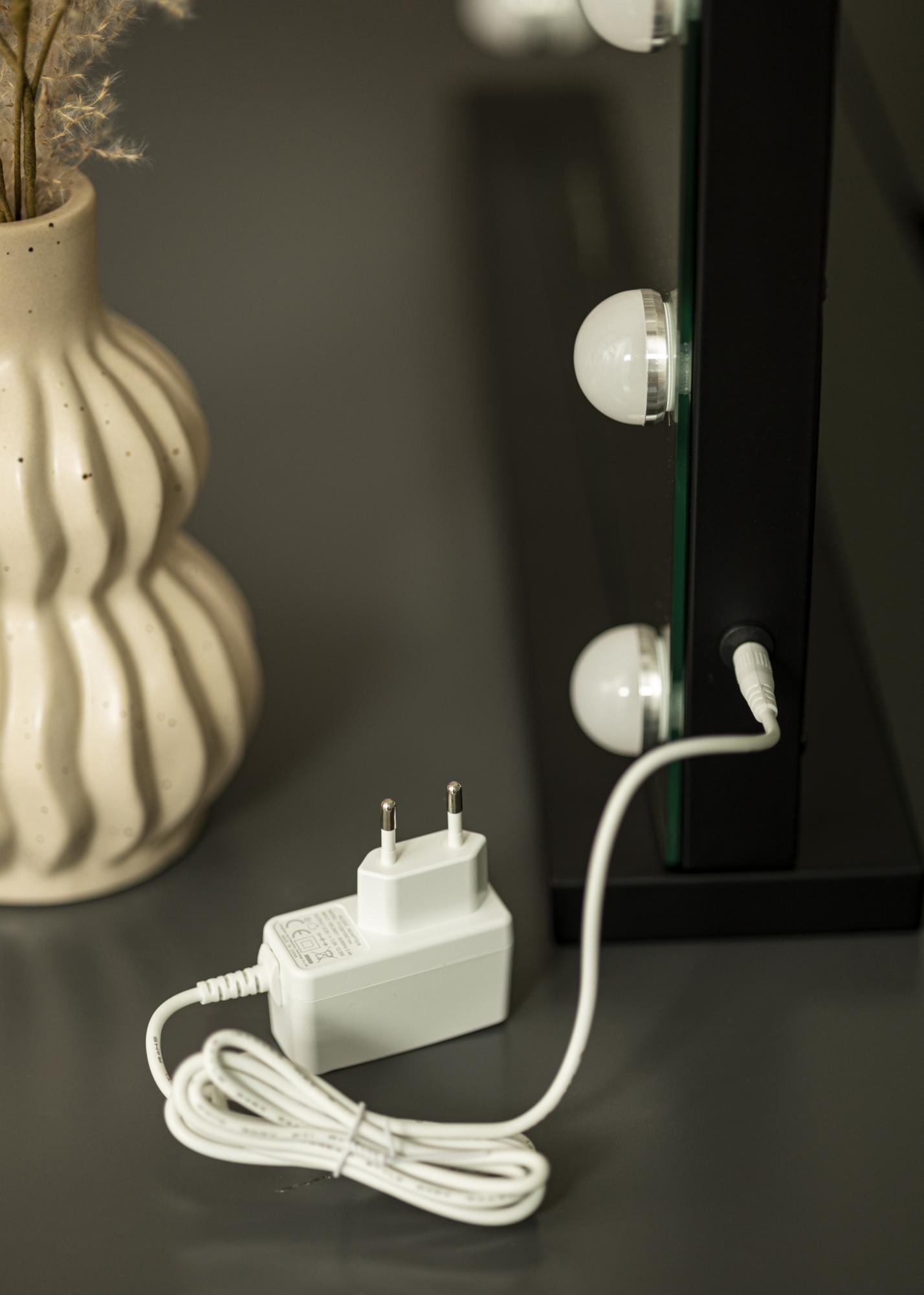 Piristä meikkinurkkaustasi, olohuonettasi tai eteistäsi tyylikkäällä meikkipeilillä, jossa on sisäänrakennettu valo! Peilissä ei ole perinteistä kehystä, vaan peilipintaa kehystää sen sijaan 15 LED-lamppua, jotka on sijoitettu pitkin peilin reunoja. Valaistus on säädettävissä ja voit säätää sekä valonvoimakkuutta että värilämpötilaa. Valoa voi muuttaa peilin alareunassa olevista kosketusnäppäimistä, jossa ”P”-nappi säätää valonvoimakkuutta ja ”M”-nappi värilämpötilaa. Alareunassa on myös erillinen virtanappi. Peili liitetään pistorasiaan.