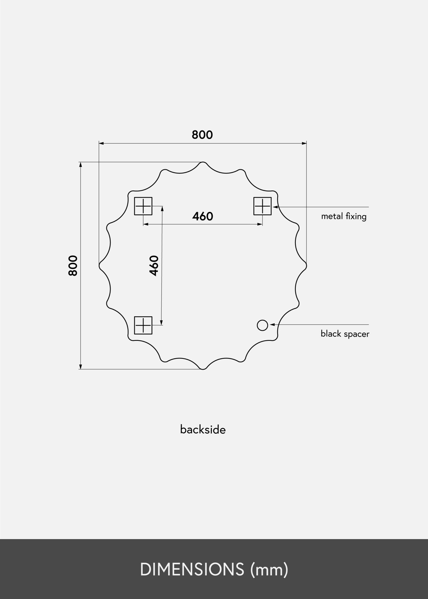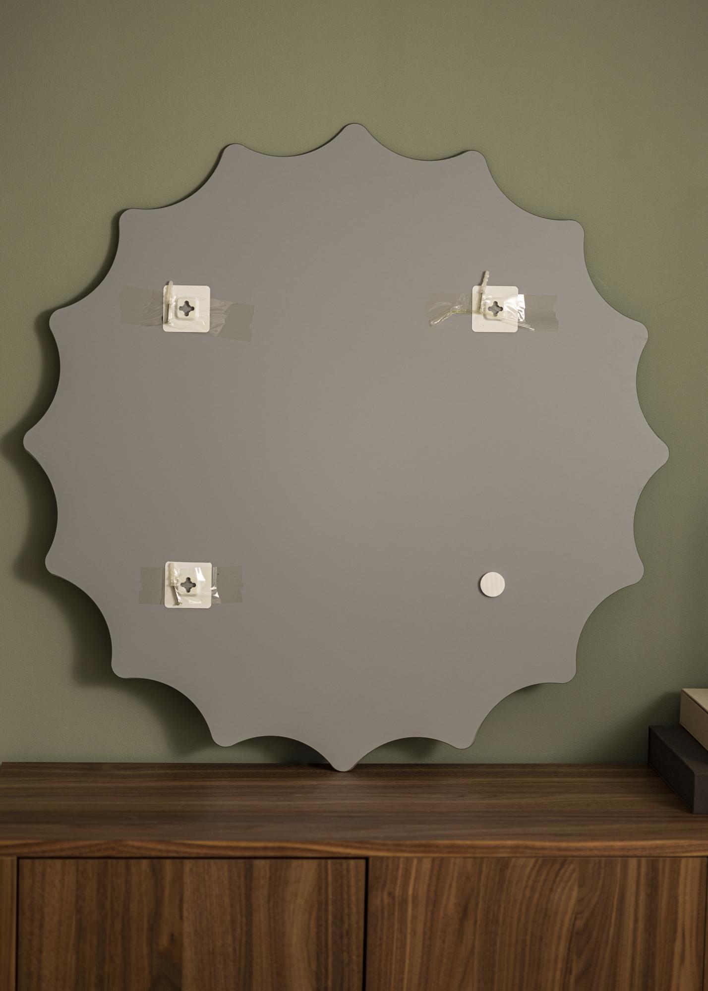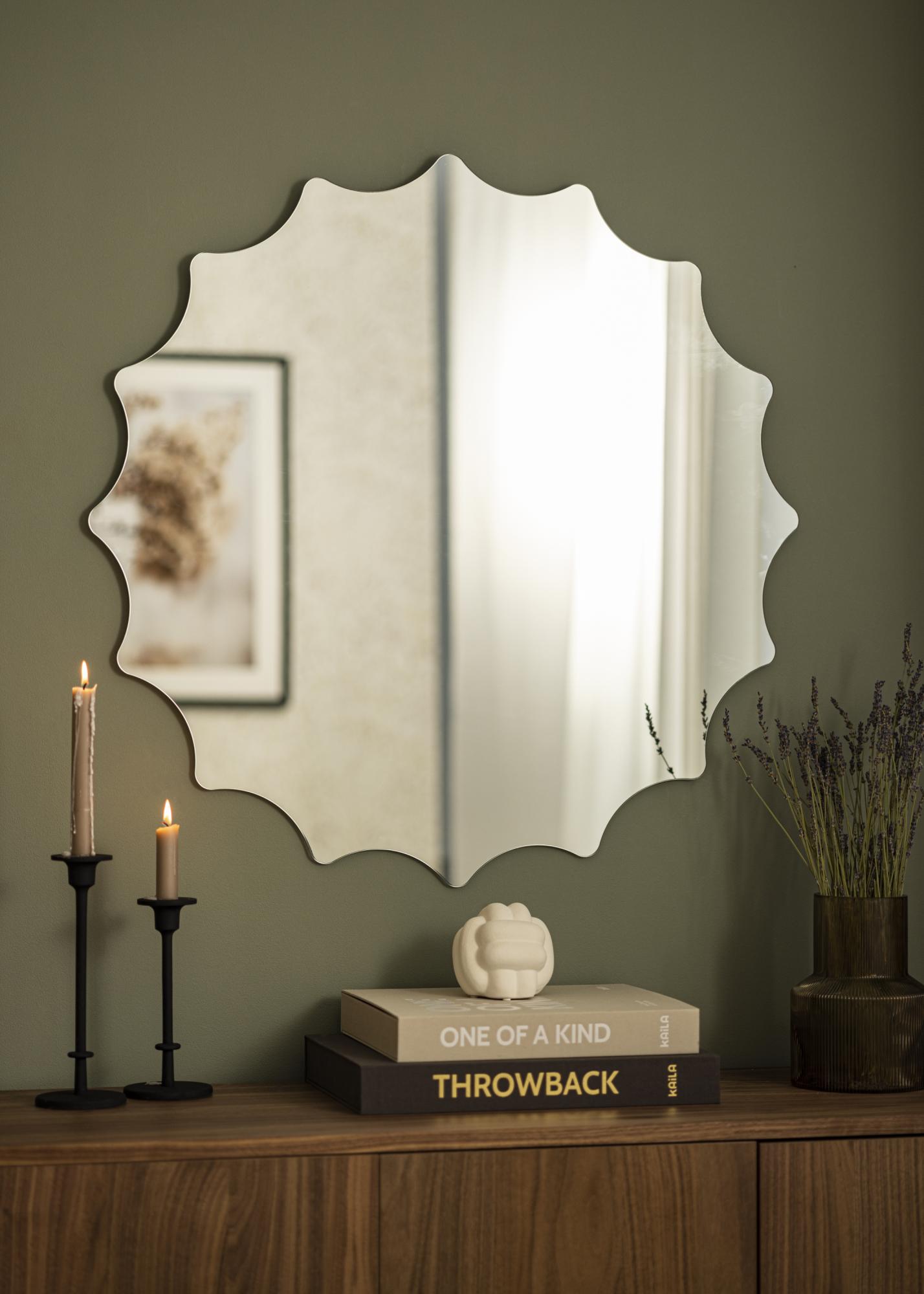 KAILAn hieno ja leikkisän muotoinen peili, joka sopii täydellisesti luovaan kotiin. Auringon muotoinen muotoilu luo jännittävän vaikutelman samalla, kun ohut ja sävyttämätön lasi säilyttää klassisen tuntuman. Seinäpeilissä ei ole kehystä, mikä vahvistaa eleganssia entisestään. Inspiroidu aaltoilevasta muodosta ja aseta peili eteisen, makuuhuoneen tai olohuoneen seinälle käytännöllisen seinäkiinnikkeen avulla. Peilin halkaisija on 80 cm.