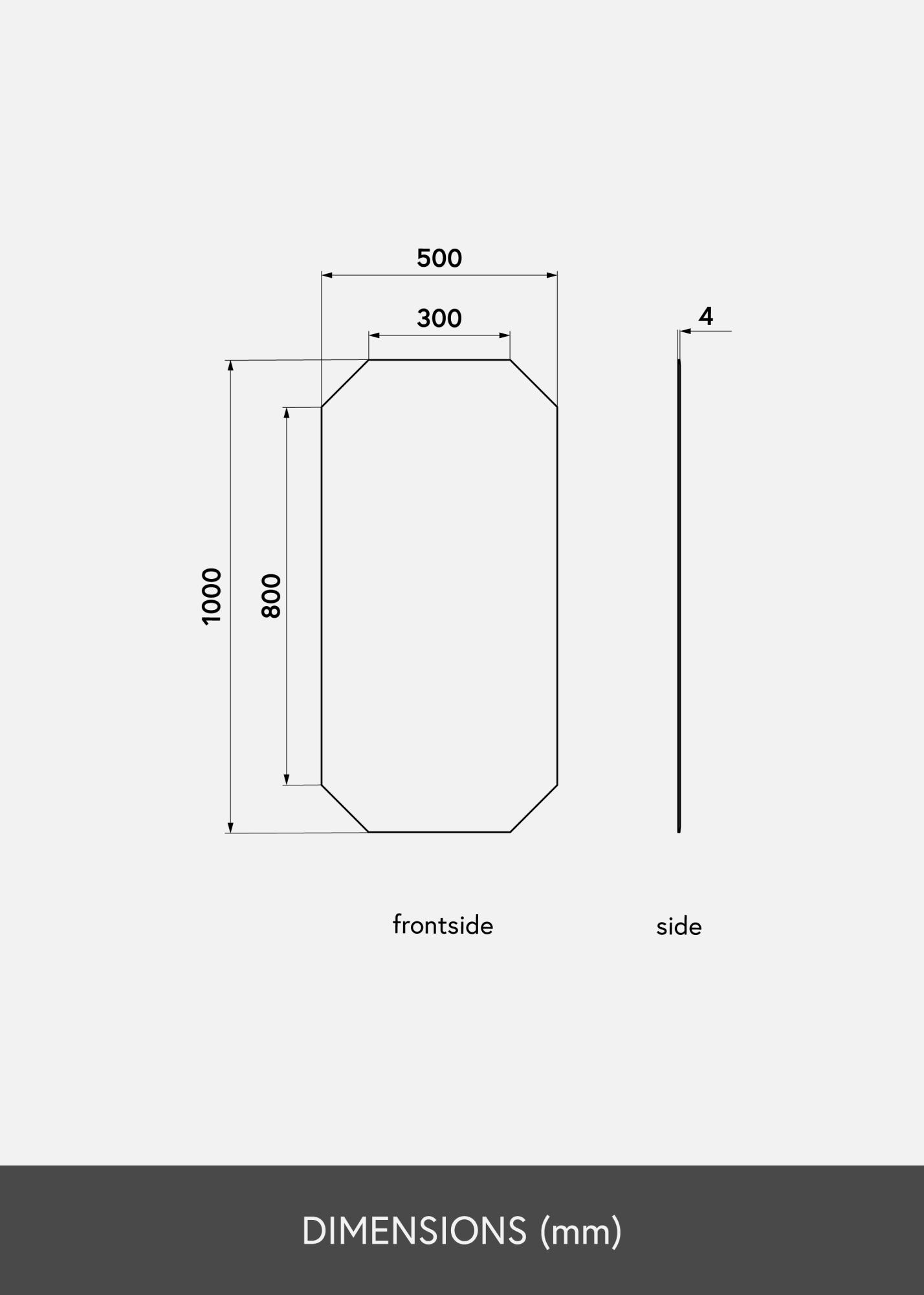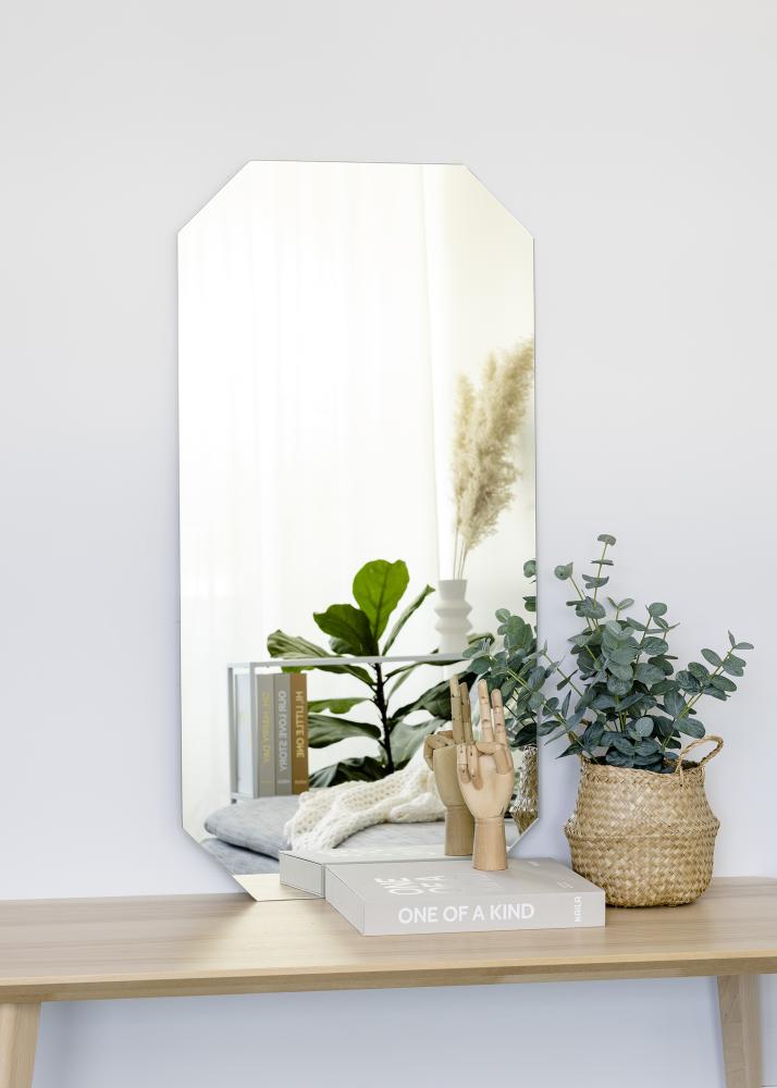 Minimalistinen ja hienostuneen näköinen Kahdeksankulmainen peili KAILAlta - täydellinen joka kotiin! Sisustustyylistäsi riippumatta tästä trendikkäästä peilistä tulee erinomainen lisä olohuoneeseen tai makuuhuoneeseen. Peilin mitat ovat 50x100 cm ja se sisältää seinäripustimen, joten voit kiinnittää sen haluamasi huoneen seinälle. Ohuessa seinäpeilissä ei ole kehystä, mikä vahvistaa ihastuttavan minimalistista ilmettä.