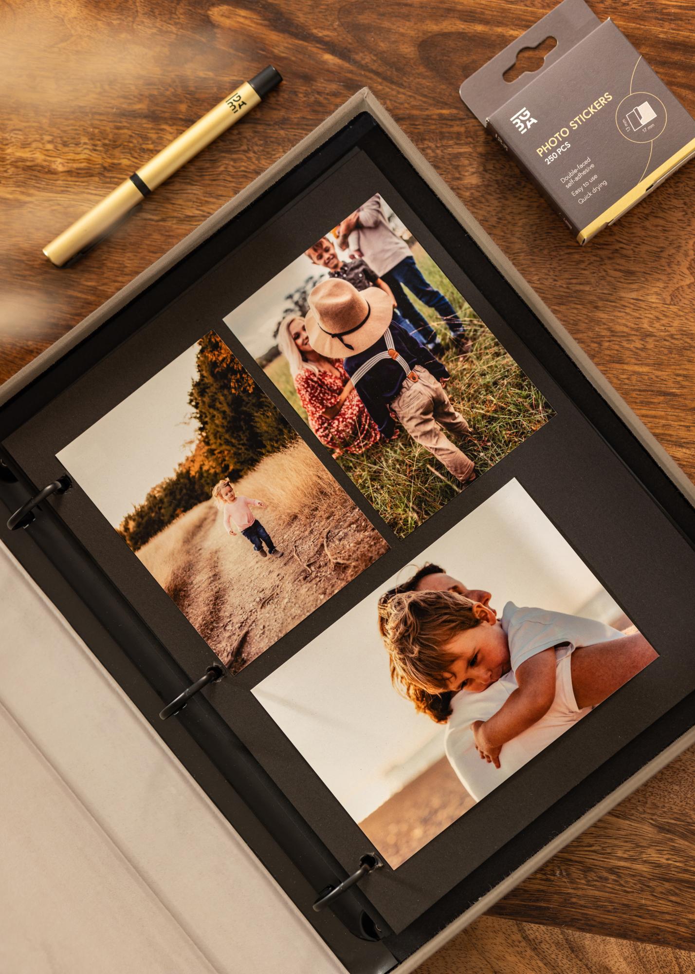 Tämä on valokuva-albumi sinulle, joka haluat säilyttää parhaat valokuvamuistosi tyylillä! Albumi on ulkomuodoltaan kuin tyylipuhdas Coffee Table Book, jonka voi laittaa koristeeksi pöydälle tai vaikka senkin päälle. Albumin sisällä on rengaskansio, jossa on 60 mustaa sivua (30 arkkia), jotka voit täyttää kaikkein hienoimmilla valokuvillasi. Tähän albumiin voit liimata kuvasi juuri niin kuin itse haluat ja käyttää luovuuttasi ja yhdistellä erikokoisia ja mallisia kuvia keskenään.