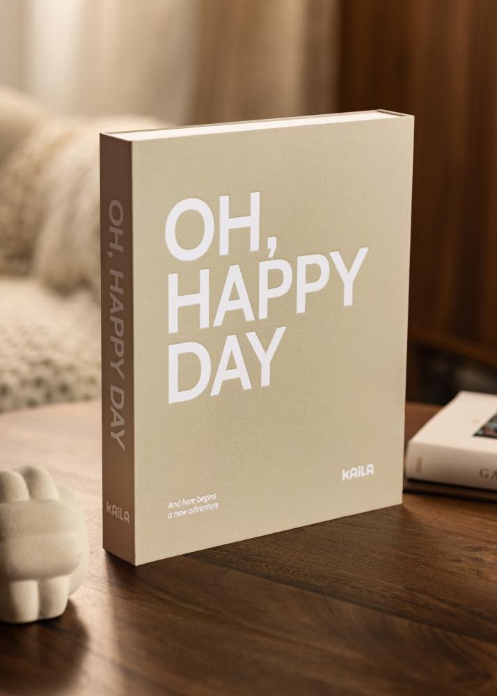 KAILA on tehnyt täydellisen valokuva-albumin hauskimmille kuvamuistoillesi! Säilytä ne tyylikkäästi tekstiilipäällysteiseen Coffee Table Photo Albumiin, josta tulee myös kotisi upea sisustuselementti. Tälle albumille on annettu nimi ’OH, HAPPY DAY’, jota on painettu kanteen suurin valkoisin kirjaimin. Alakulmaan on vielä lisätty ’And here begins a new adventure’.