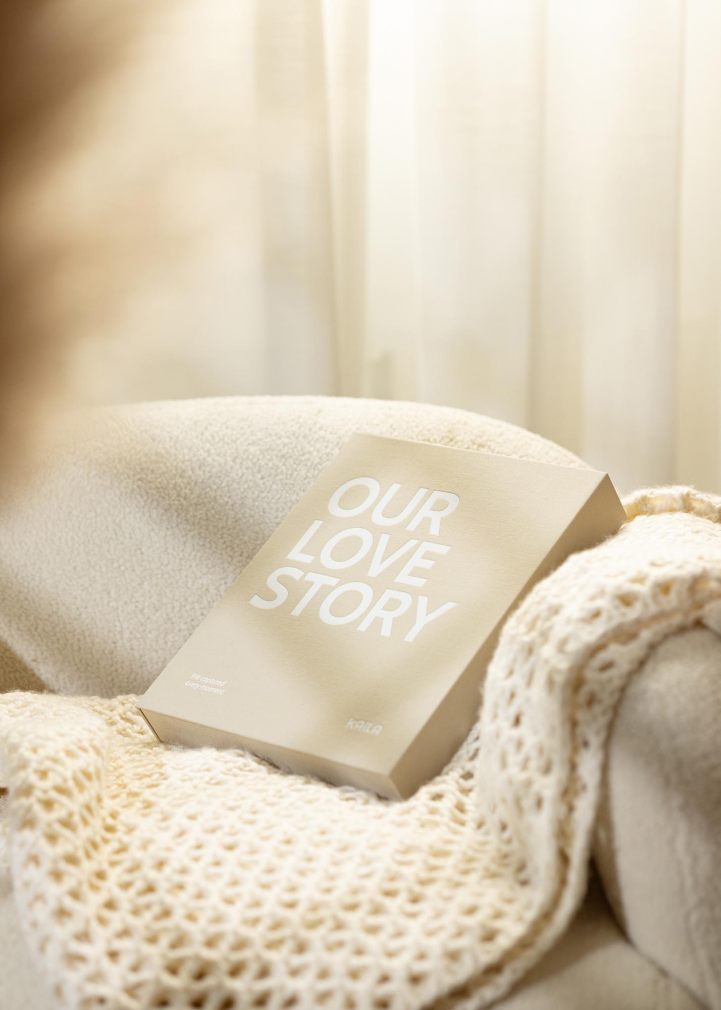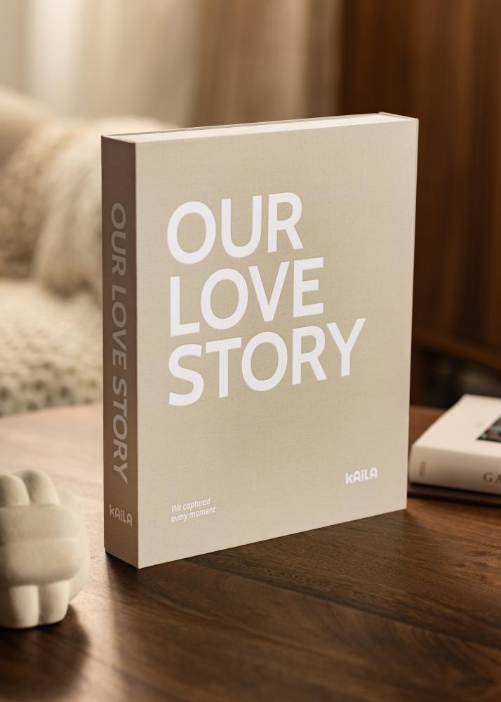 Tämä on sekä valokuva-albumi, että Coffee Table Book, josta tulee kotisi koristeellinen sisustuselementti. Tämä tyylikkään harmaasävyinen albumi on muotoiltu tekstiilipäällysteiseksi rasiaksi. Sen kanteen on painettu suurin valkoisin kirjaimin ’OUR LOVE STORY’ ja alakulmaan pienemmin kirjaimin ’We captured every moment’, mikä tekee tästä albumista täydellisen säilyttämään kuvia rakkaimmistaan tai vaihtoehtoisesti upean lahjan. Albumin sisäkannessa on herkkä painokuvio ja rasia avautuu rengaskansioksi, joka sisältää 30 mustaa arkkia (yhteensä 60 sivua). Voit päästää luovuutesi valloilleen, sillä kuvia voi kiinnittää vapaasti toivomallasi tavalla.