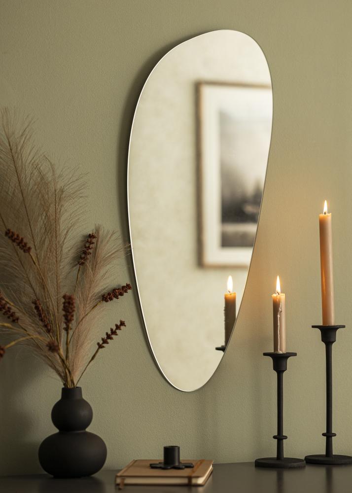 Tämä seinäpeili edustaa minimalismia parhaimmillaan: peilissä on kehyksetön muotoilu ja asymmetrinen, pitkulainen muoto. Ohut peililasi, jonka paksuus on vain 4 mm, vahvistaa tyylipuhdasta ja minimalistista vaikutelmaa entisestään.
