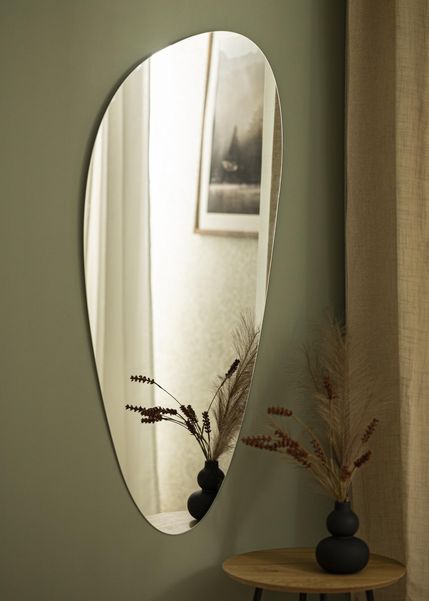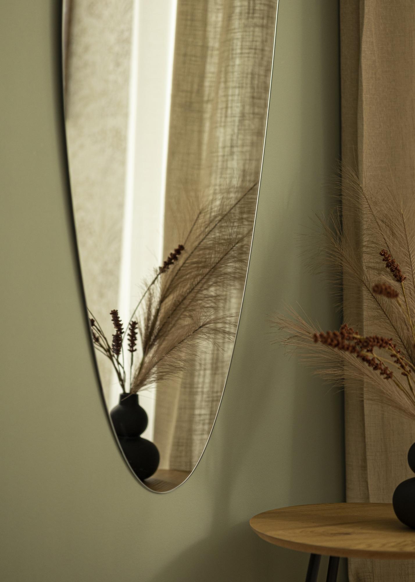 Tämä seinäpeili edustaa minimalismia parhaimmillaan: peilissä on kehyksetön muotoilu ja asymmetrinen, pitkulainen muoto. Ohut peililasi, jonka paksuus on vain 4 mm, vahvistaa tyylipuhdasta ja minimalistista vaikutelmaa entisestään.