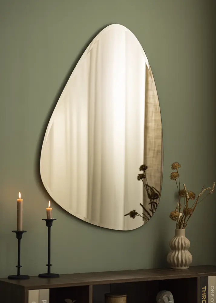 Löydä kotiisi ainutlaatuinen yksityiskohta meidän pisaranmuotoisella peilillämme. Sen pehmeät linjat ja epäsymmetrinen muotoilu luovat dynaamisen ja modernin tunnelman huoneeseen. Peilin mitat, 70x100 cm, tekevät siitä näyttävän keskipisteen, samalla ollessa erittäin käytännöllinen.