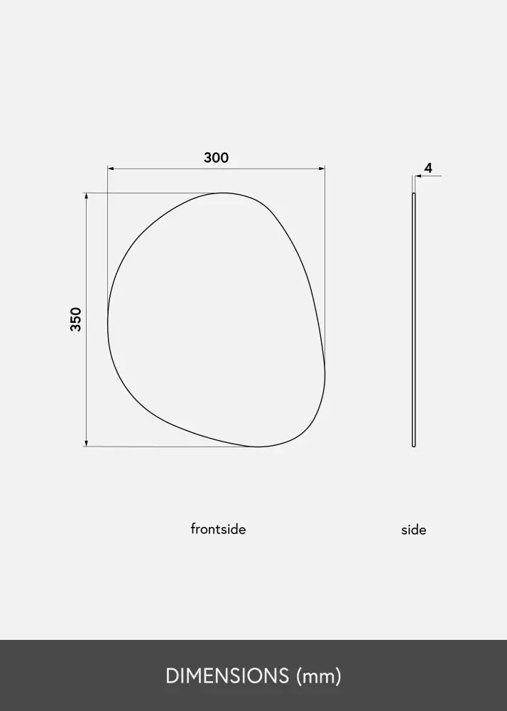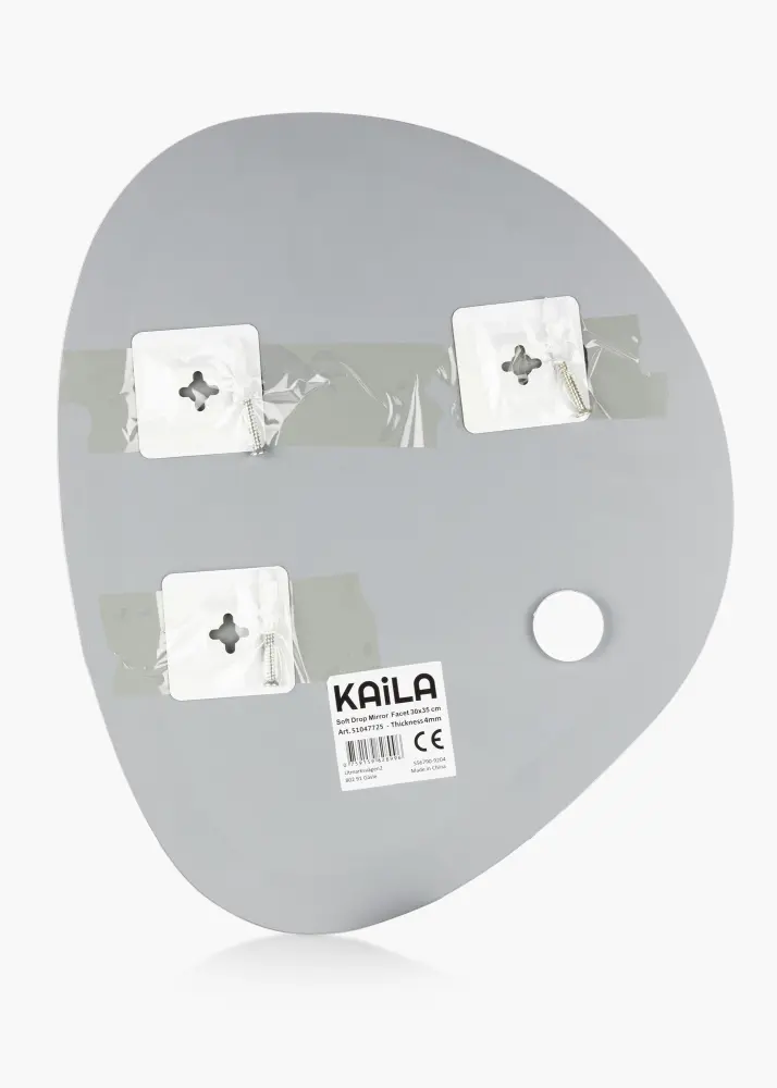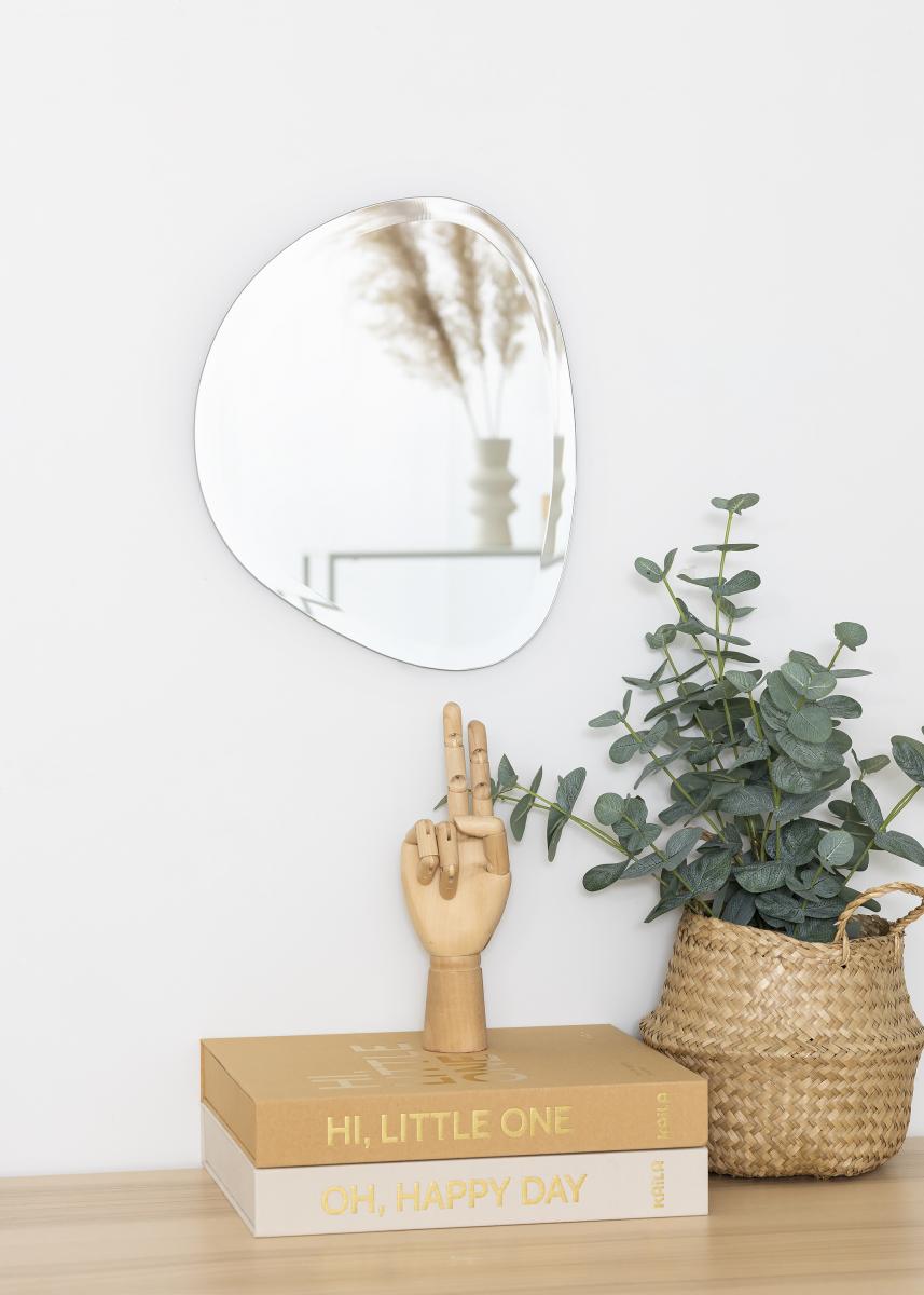 Tämä seinäpeili KAILAlta on muodoltaan elegantin epäsymmetrinen ja muistuttaa pisaraa. Peili on erittäin ohut eikä siinä ole kehystä, mikä yhdessä ylellisen fasettihiotun reunan kanssa korostaa entisestään eleganttia ja modernia ulkonäköä. Se on erittäin koristeellinen seinäpeili, joka taatusti vetää puoleensa katseita mihin tahansa huoneeseen se laitetaankin - niin olohuoneessa, eteisessä kuin makuuhuoneessakin. Peilin koko on 30x35 cm.