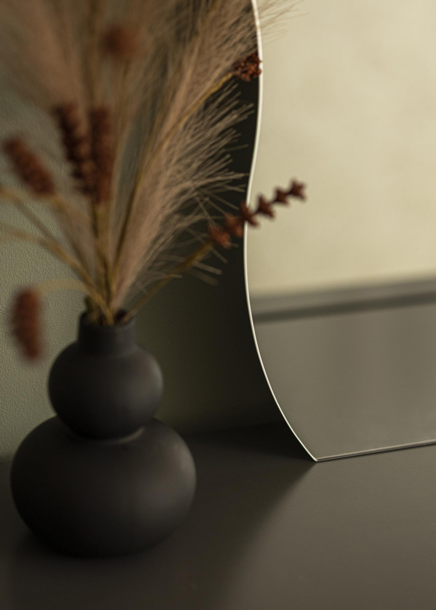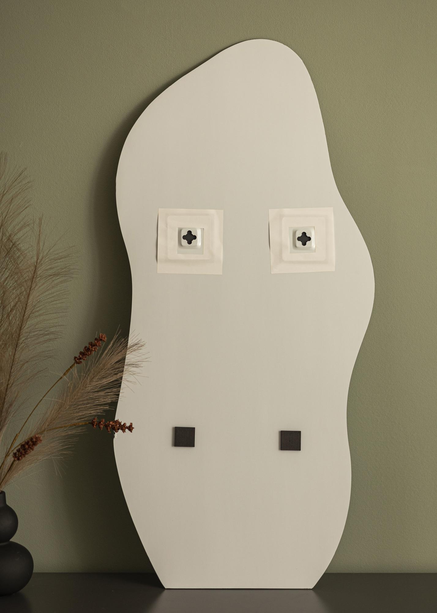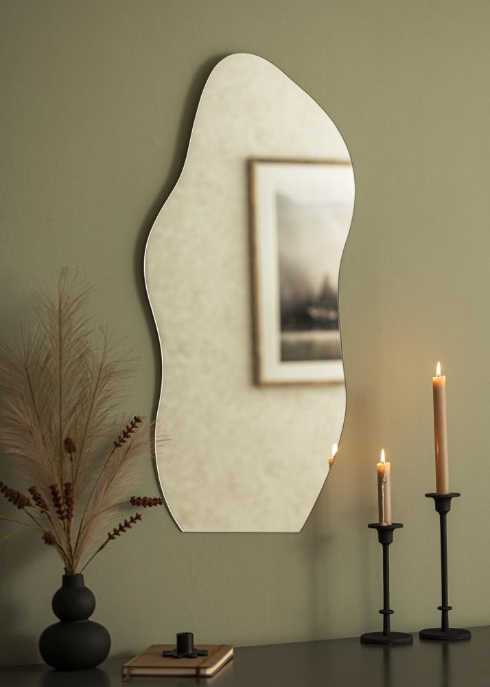 Tässä seinäpeilissä on trendikäs design: reunoissa on pehmeän aaltoileva muoto. Peilin alareuna on suora, jonka ansiosta peili on erityisen tyylikäs huonekalun päällä, esimerkiksi lipaston tai sivupöydän päällä. Peilin takapuolella on seinäkiinnikkeet ja sen voi ripustaa seinälle pystyasentoon.