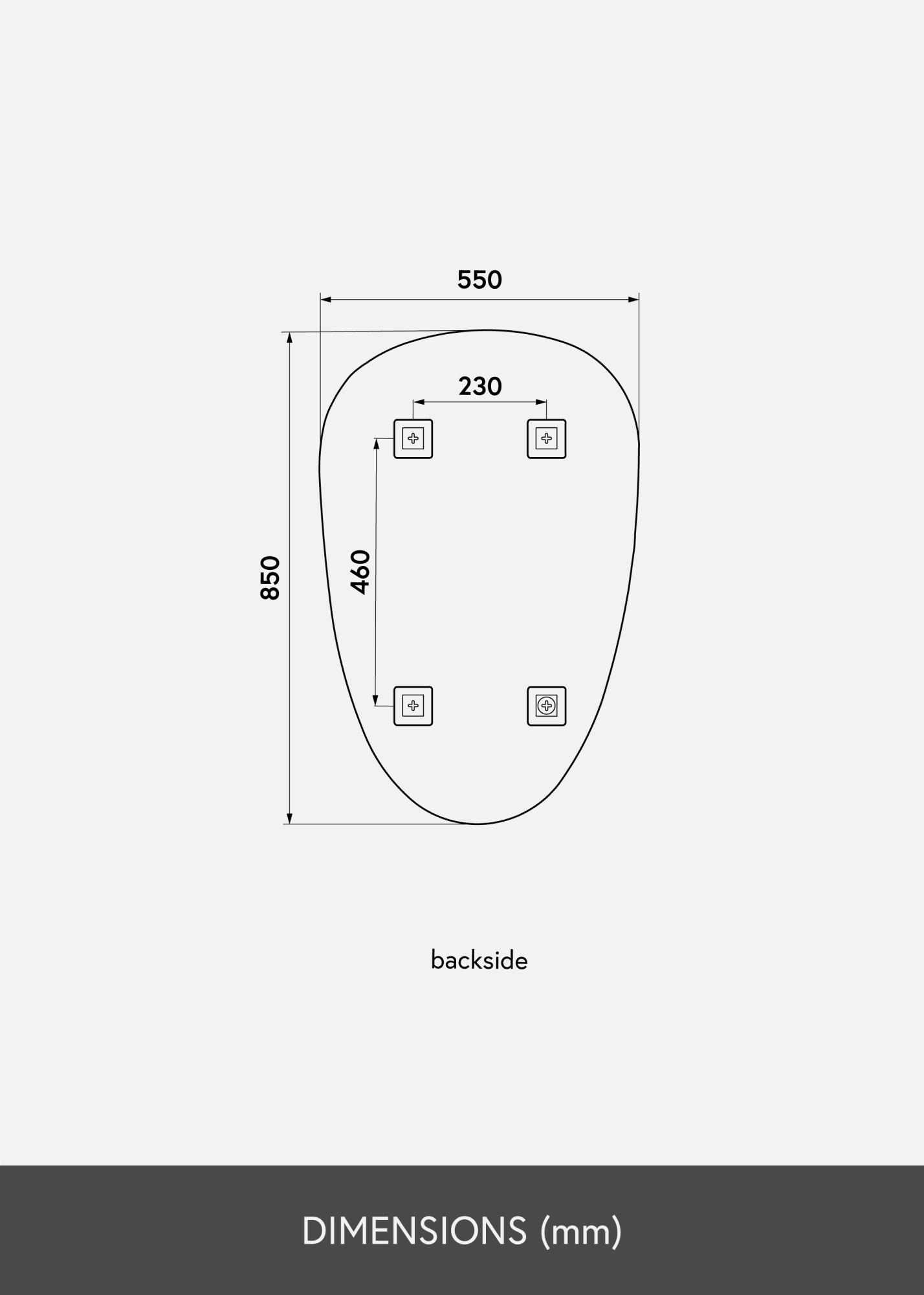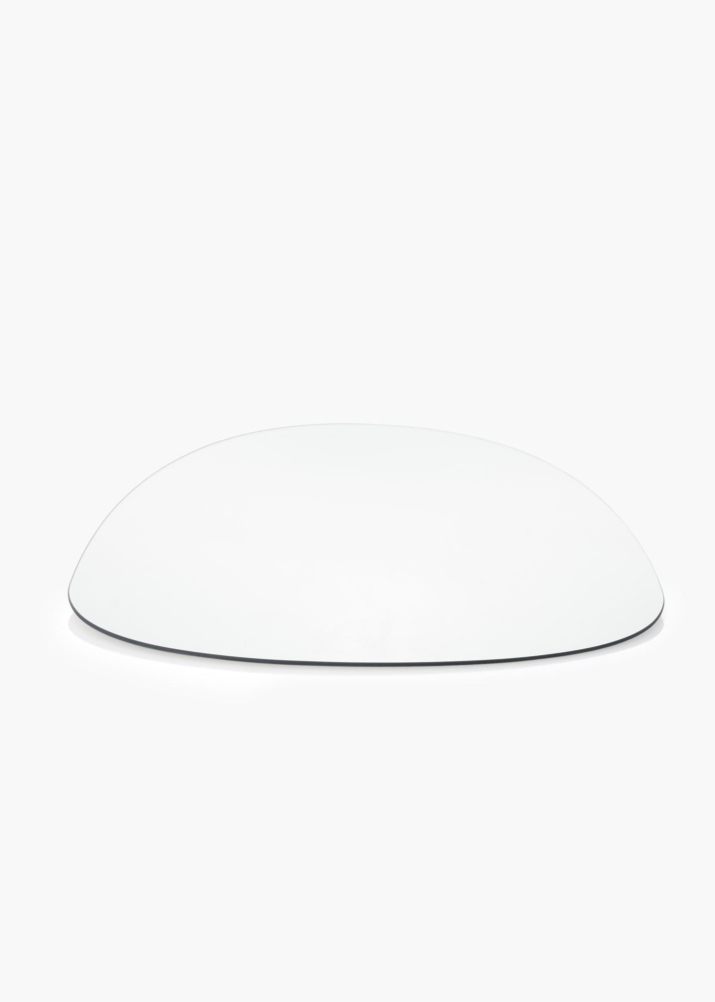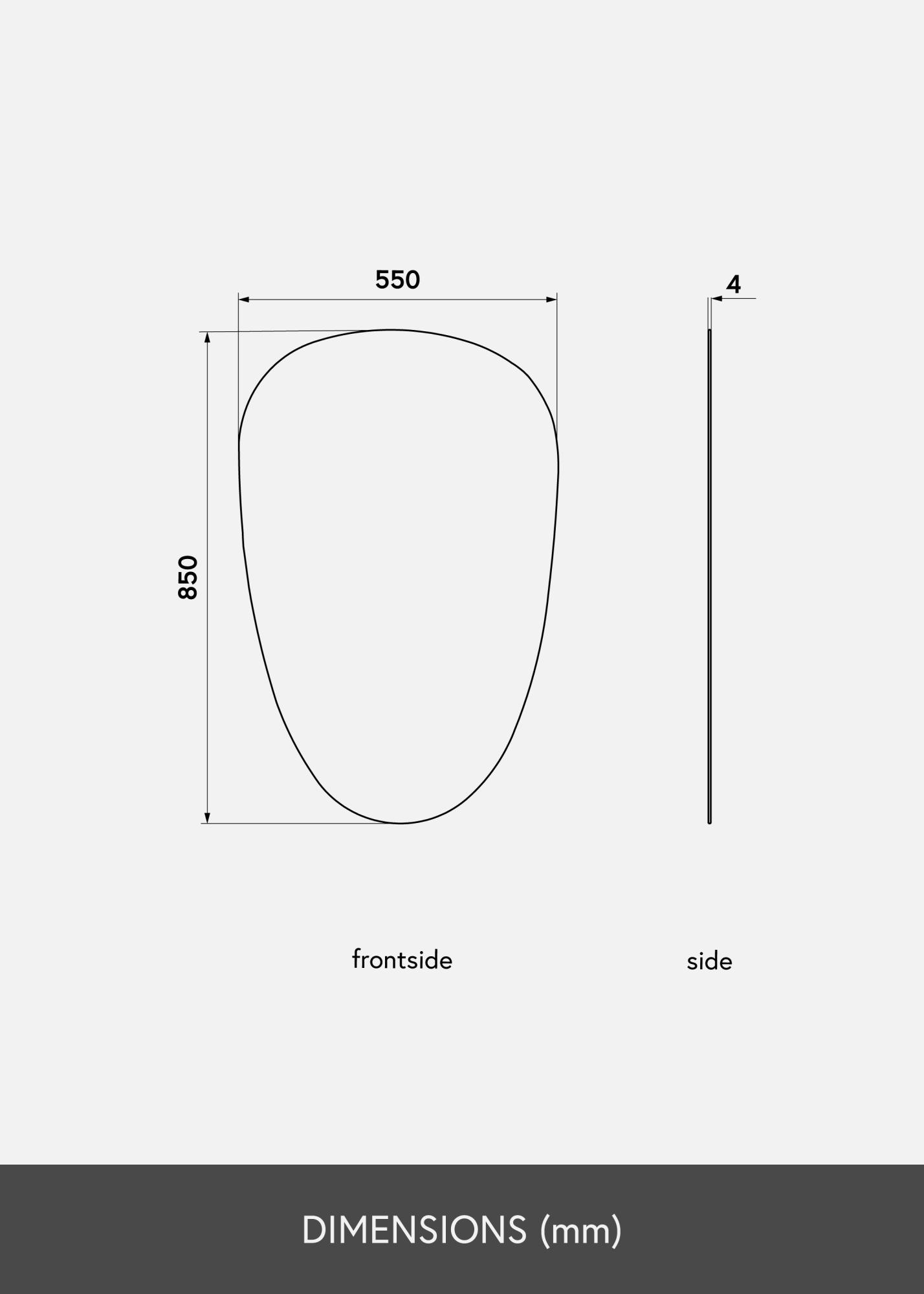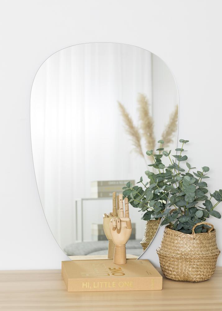 Tämä epäsymmetrinen peili KAILAlta on moderni lisä kotisi sisustukseen. Peilin muodot ovat pehmeät, ja niitä voidaan kutsua lähinnä epätasaisen ovaaliksi. Seinäpeili on ohut ja siinä ei ole kehystä, mikä lisää eleganttia tuntua.
