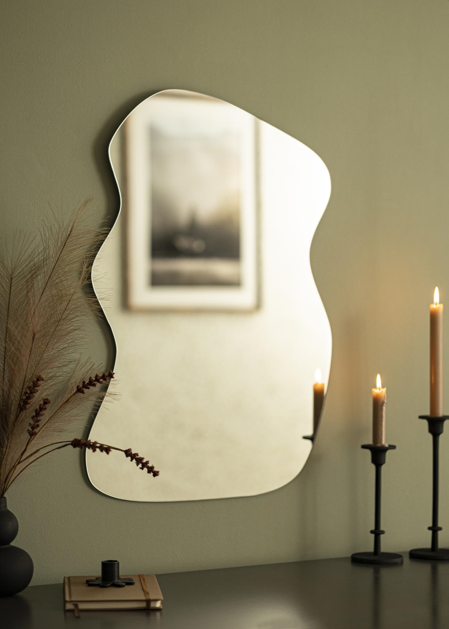 Tässä seinäpeilissä yhdistyy täydellisesti klassinen eleganssi ja moderni tyyli. Peilin kevyesti aaltoileva muoto antaa sille ainutlaatuisen ja trendikkään ulkomuodon, samalla kun kehyksetön peilipinta antaa lisäripauksen tyylikkyyttä.