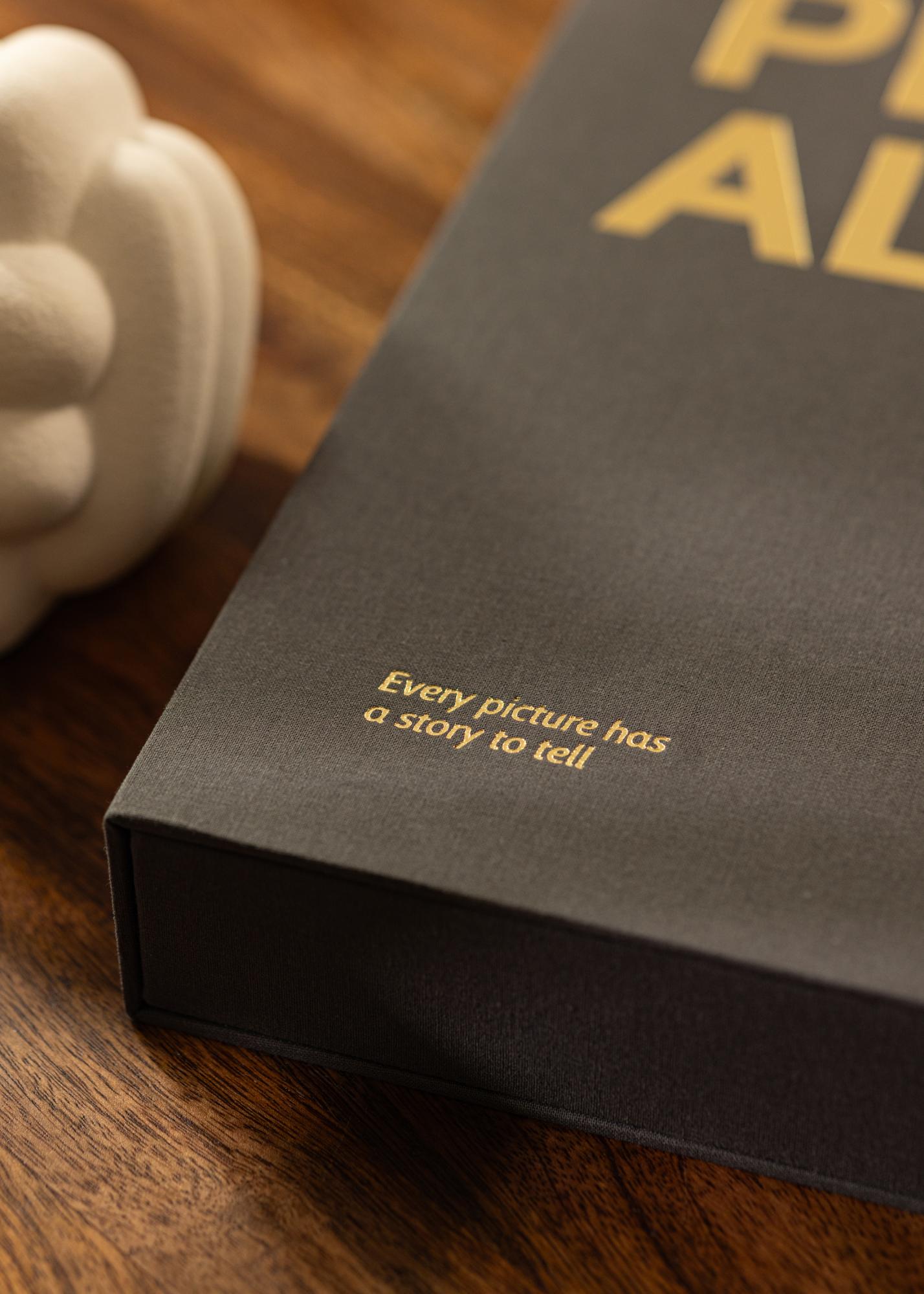 Albumin etukantta koristaa teksti ”PHOTO ALBUM”. Albumin vasemmassa reunassa on alaotsikko ”Every picture has a story to tell”. Tekstin yksinkertaisen hienostunut sanoma vahvistaa albumin modernia tyyliä entisestään.