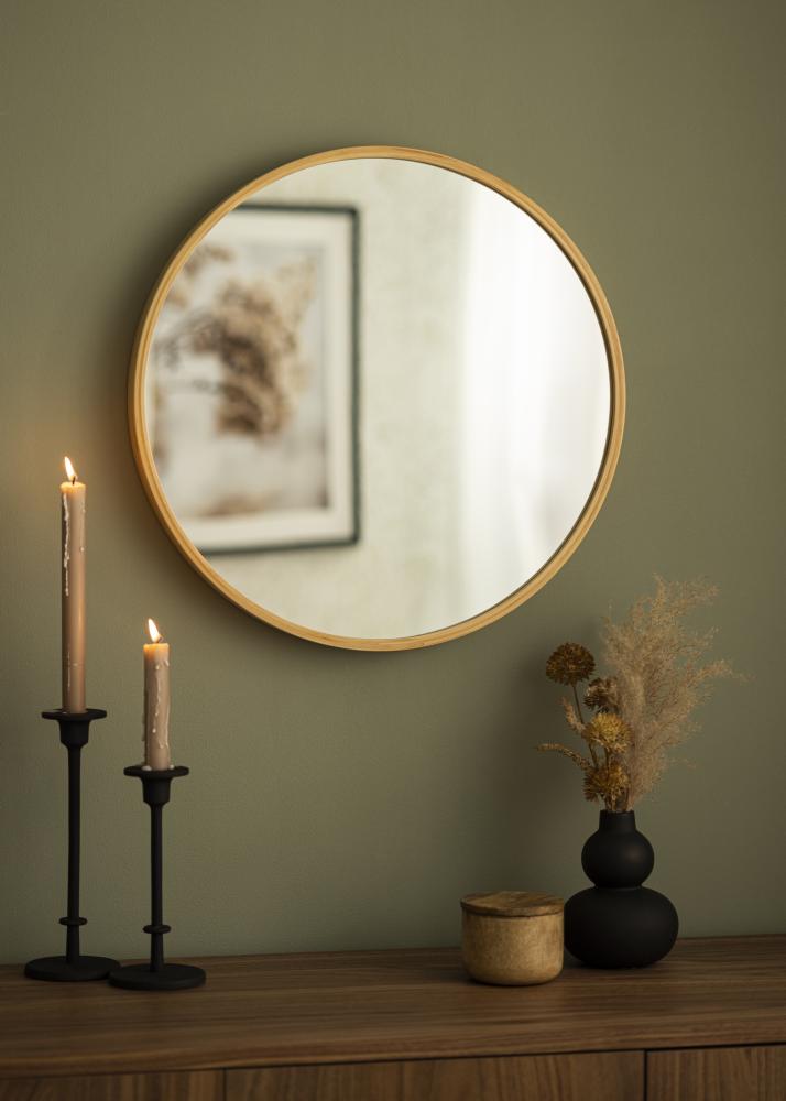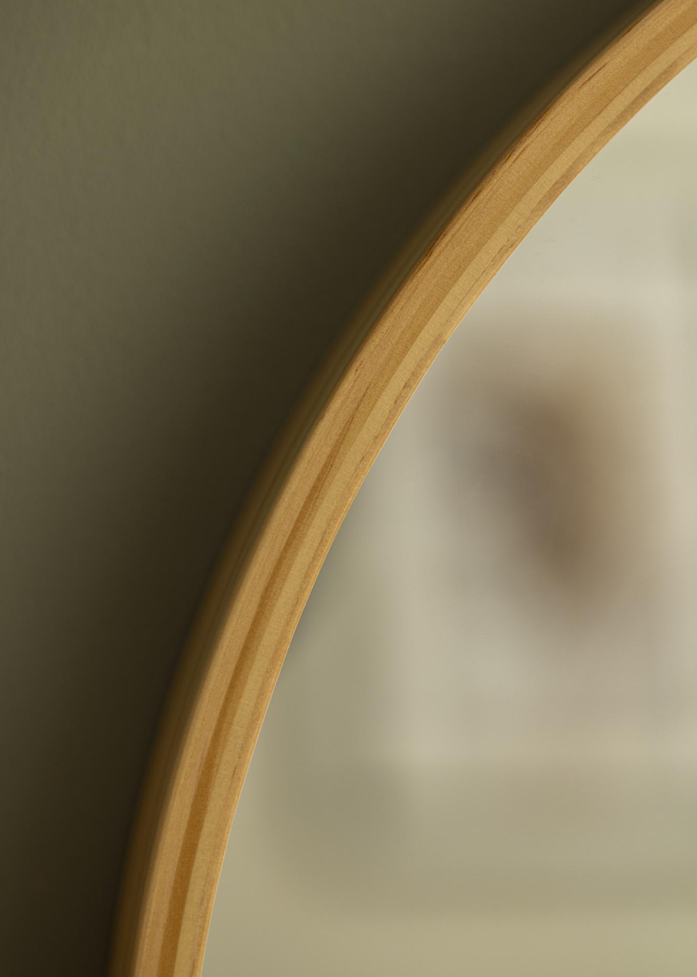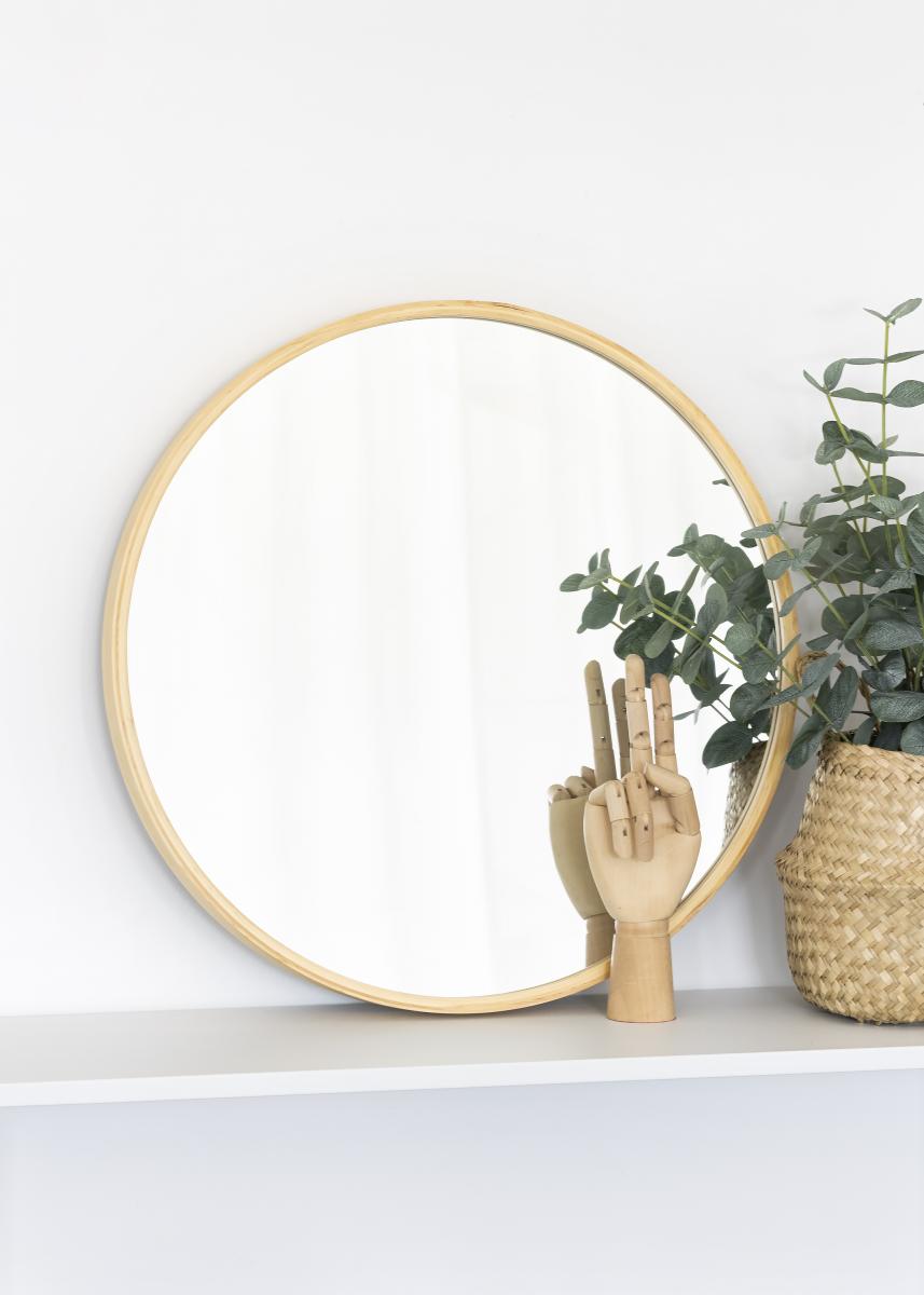 Tätä peiliä kehystää vaalea puureunus ja sopii sinulle, joka pidät maanläheisestä ja modernista sisustustyylistä. Tämän tyyliset luonnonläheiset sisustusyksityiskohdat luovat kodikkaan ja mukavan ilmapiirin kotiisi. Peili on varustettu seinäkiinnikkeillä ja sen halkaisija on 50 cm.