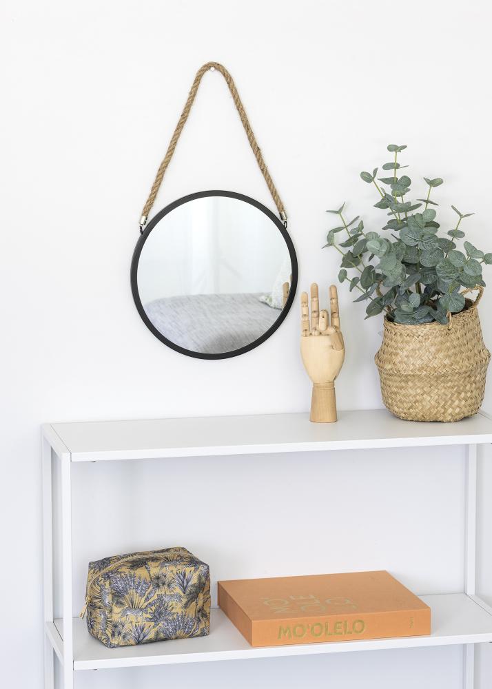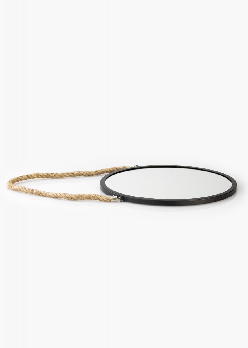 Tämä pyöreä seinäpeili on sinulle, joka pidät merihenkisestä sisustuksesta! Peili on metallia ja sitä somistaa hamppuköysi, joka toimii koristeellisena ripustuksena. Peilissä on seinäkiinnikkeet. Peililasia kehystää musta reuna, joka antaa peilille tyylikästä syvyyttä. Peilin halkaisija on 30 cm.