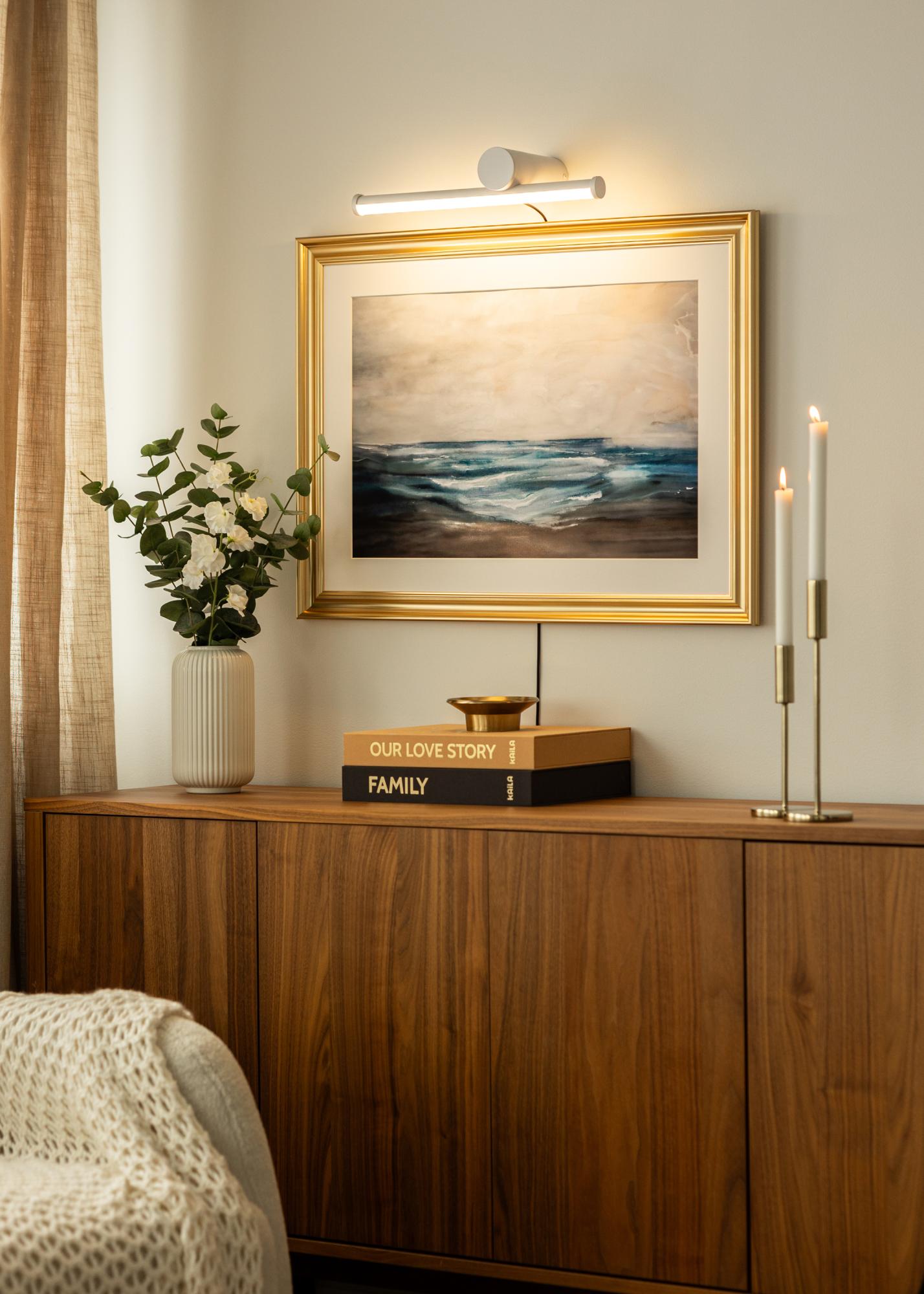 Sen puhdas ja moderni valkoinen muotoilu tekee tästä tauluvalaisimesta hillityn ja tyylikkään vaihtoehdon korostamaan maalauksiasi tai valokuviasi. Valo leviää pehmeästi ja tasaisesti jopa 80 cm leveisiin taideteoksiin, mikä tekee siitä monipuolisen ratkaisun sekä kotiin että toimistoon. Mittoineen 40 cm pituutta ja 15,3 cm syvyyttä, valaisin on suunniteltu istumaan kauniisti taulun yläpuolelle ilman että se vie liikaa huomiota taideteokselta.