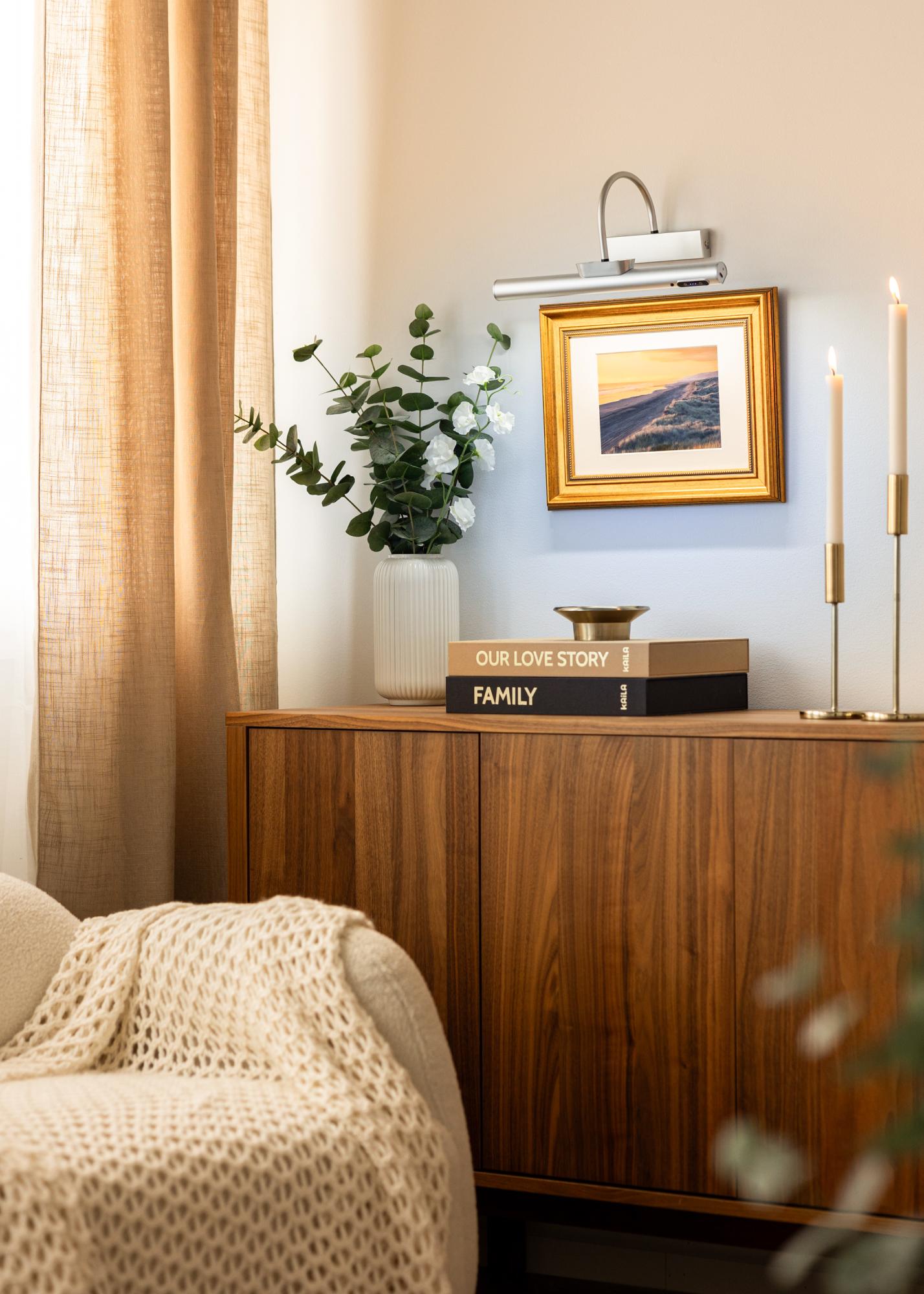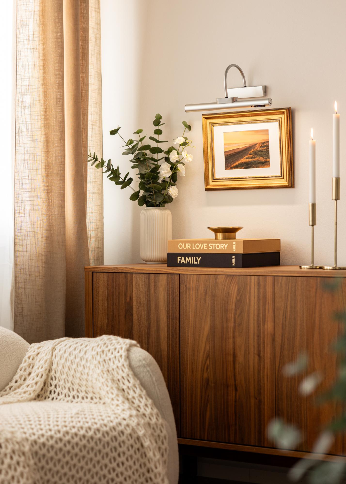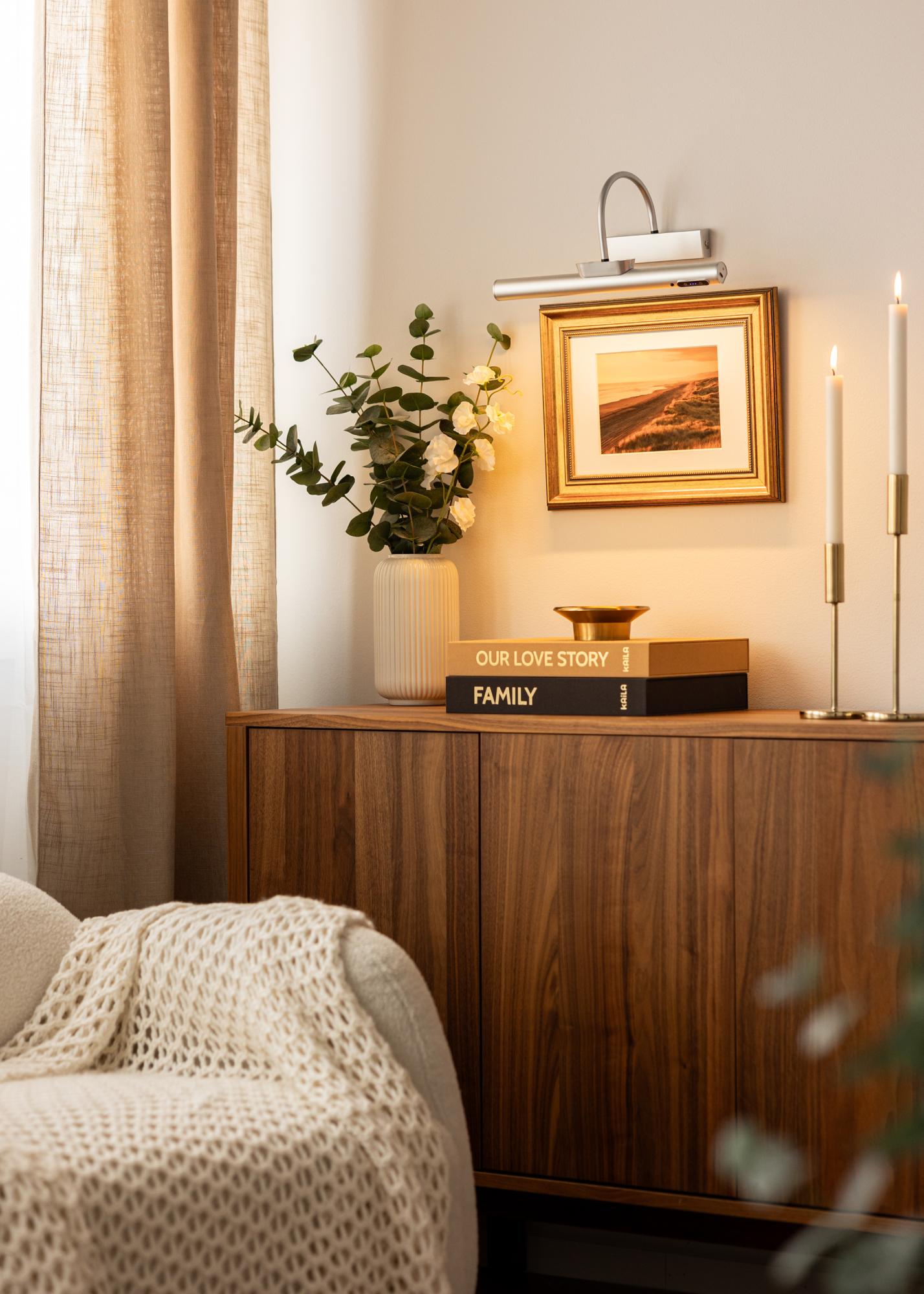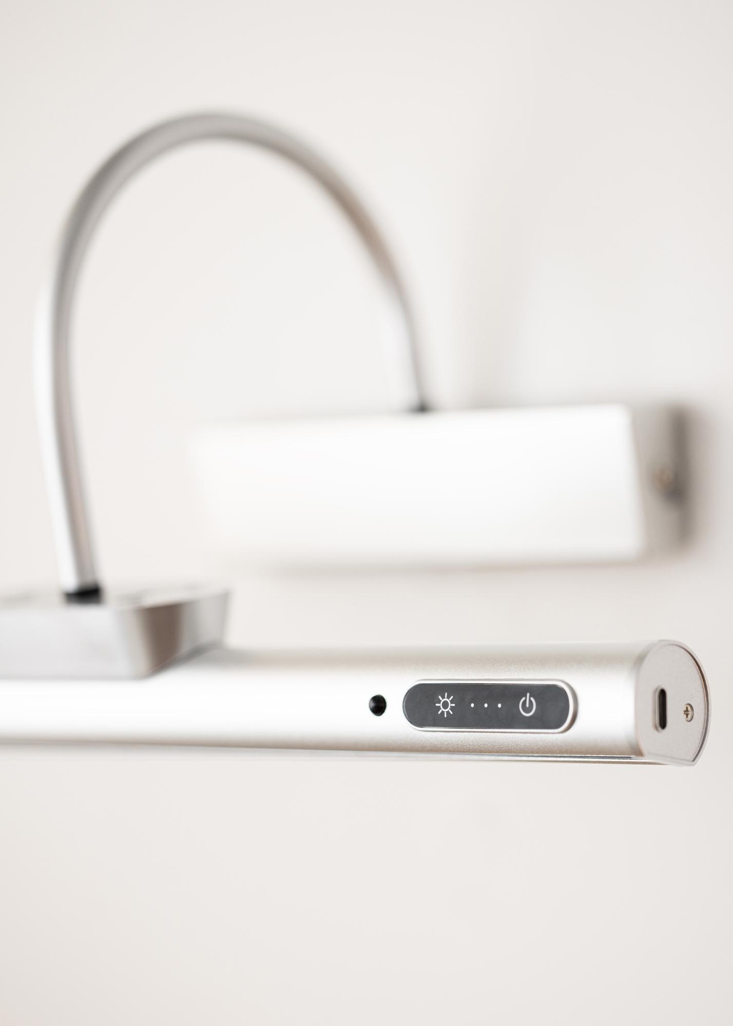 Tämä paristokäyttöinen tauluvalaistus tarjoaa tyylikkään ja joustavan ratkaisun taideteostesi valaisemiseen ilman johtojen aiheuttamaa hankaluutta. Tyylikkään hopeanvärisenä se sulautuu useimpiin ympäristöihin, halusitpa valaista valokuvan, taulun tai muun tyyppistä seinätaidetta. Sen suurin etu on, että voit sijoittaa sen minne tahansa, ilman että sinun tarvitsee miettiä lähistön pistorasiaa.