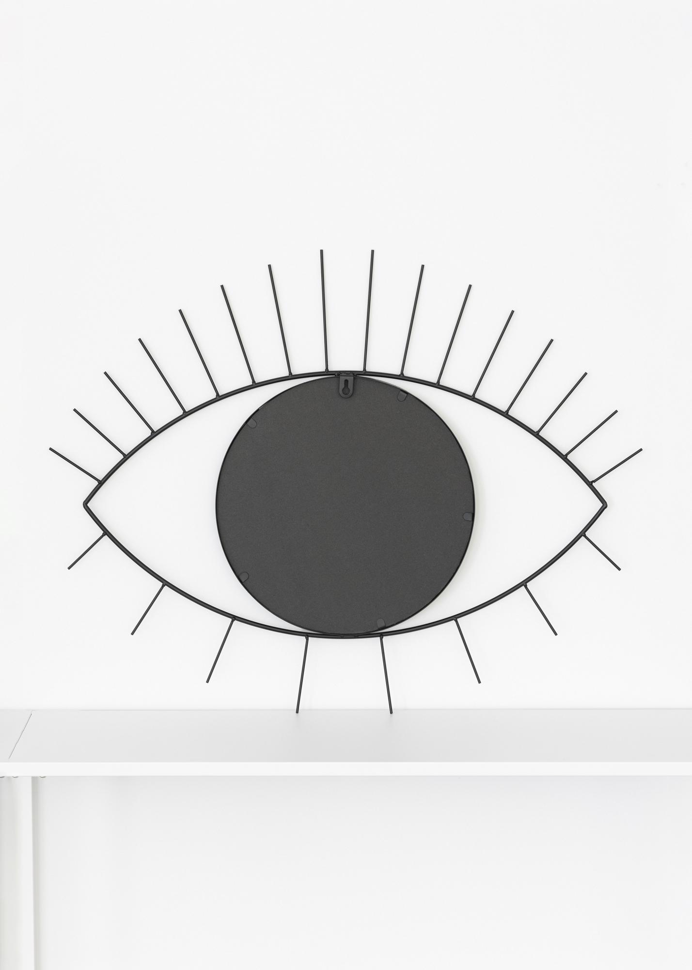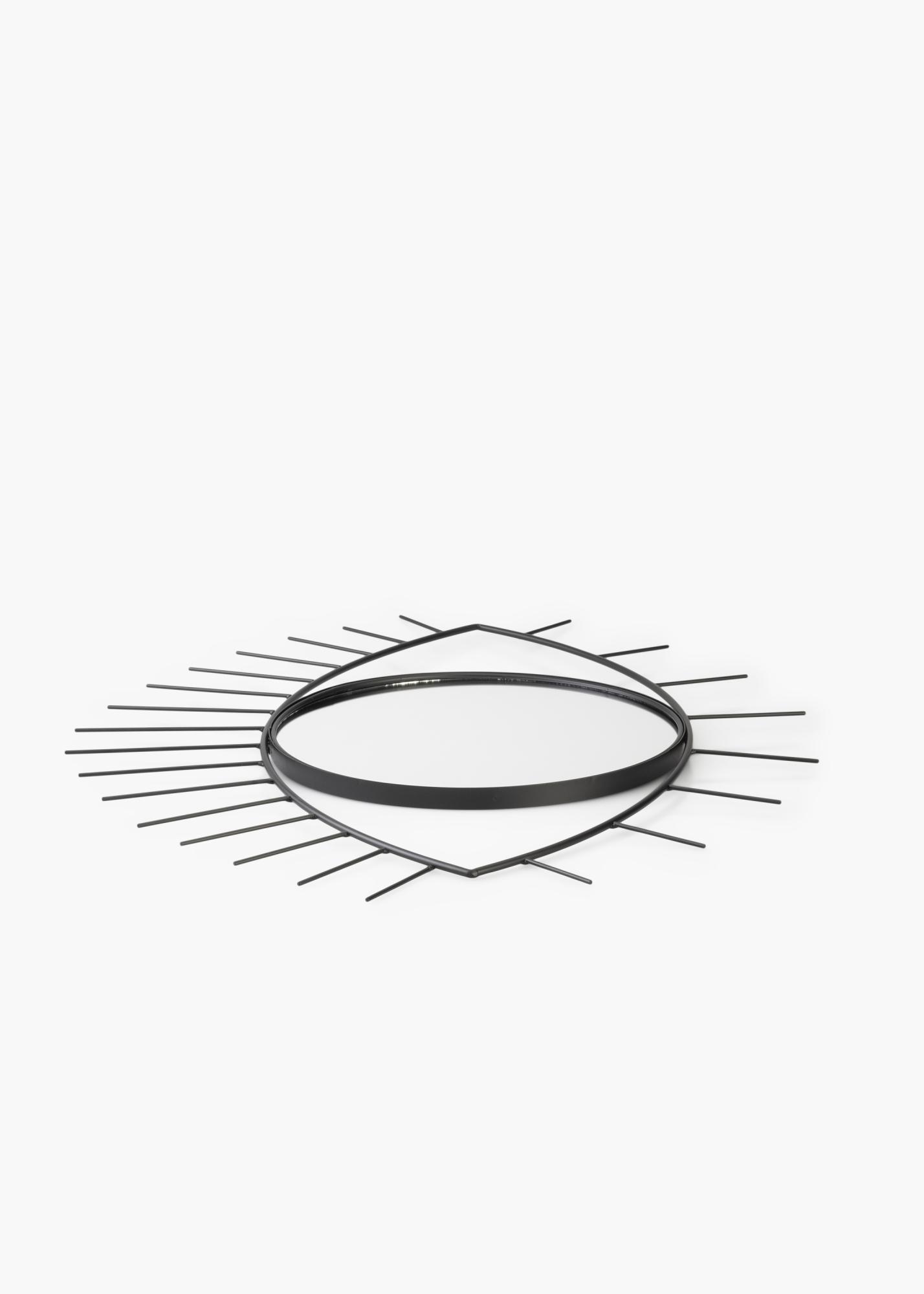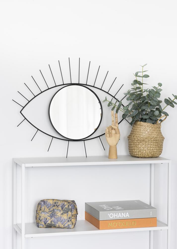 Tämä on todella ainutlaatuinen, silmäänpistävä seinäpeili. Sen muotoilu muistuttaa silmää, jota reunustavat pitkät metalliripset. Peilin runko on tyylikkään mustasävyinen ja sen mitat ovat 55x70 cm. Peilin boheeminen ilme soveltuu yhdistettäväksi osaksi tauluseinää omalaatuisen kokonaisuuden luomiseksi.