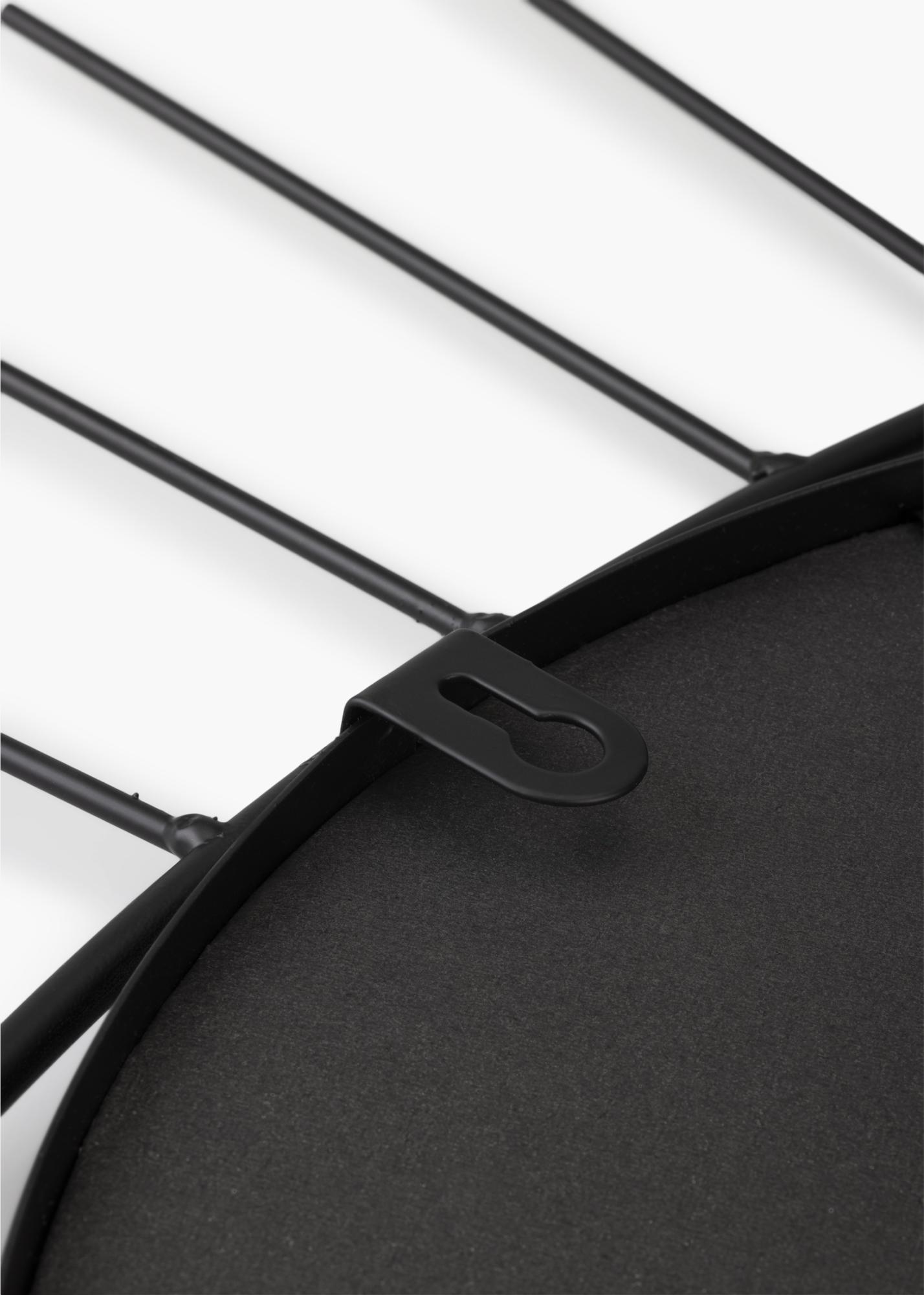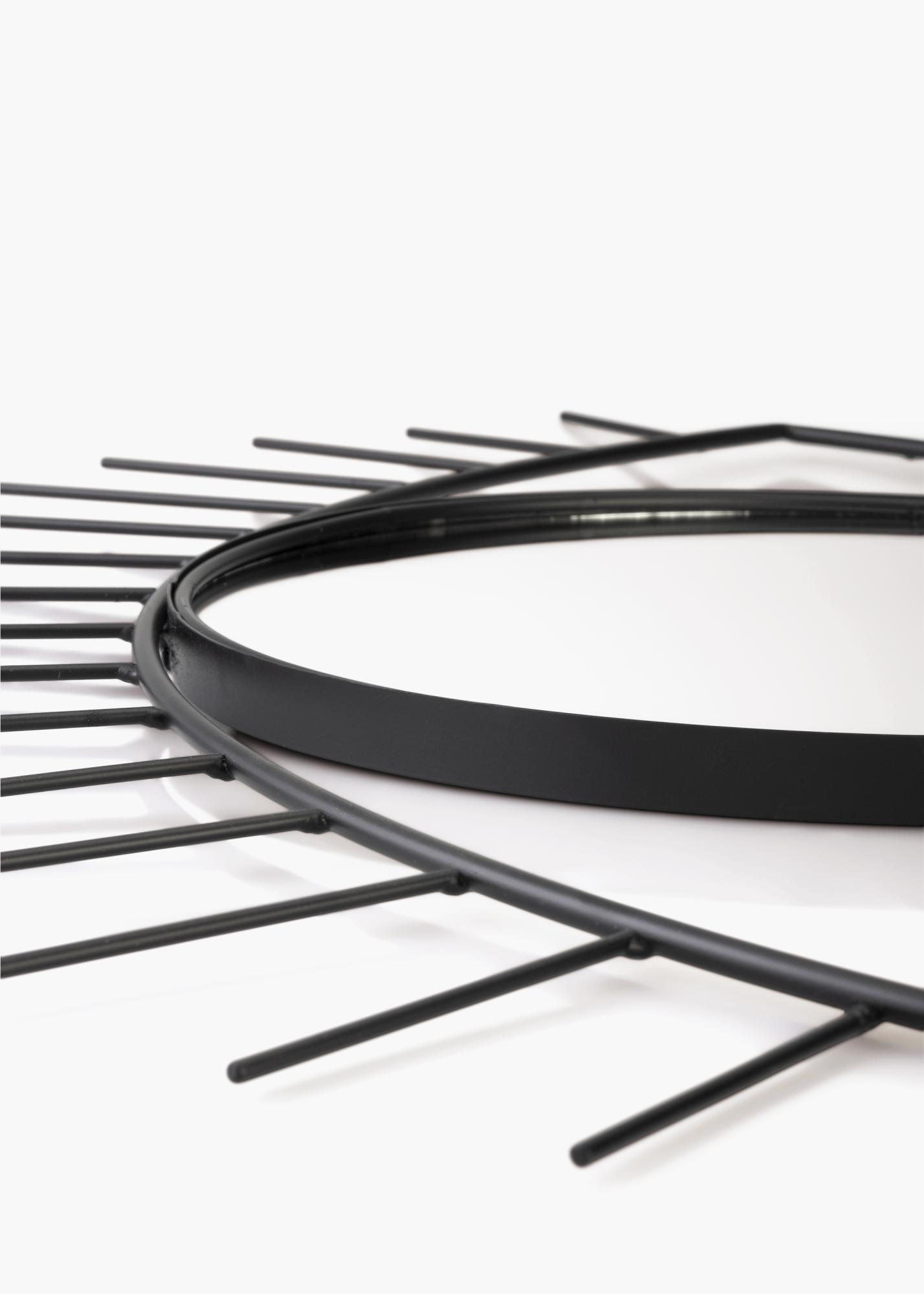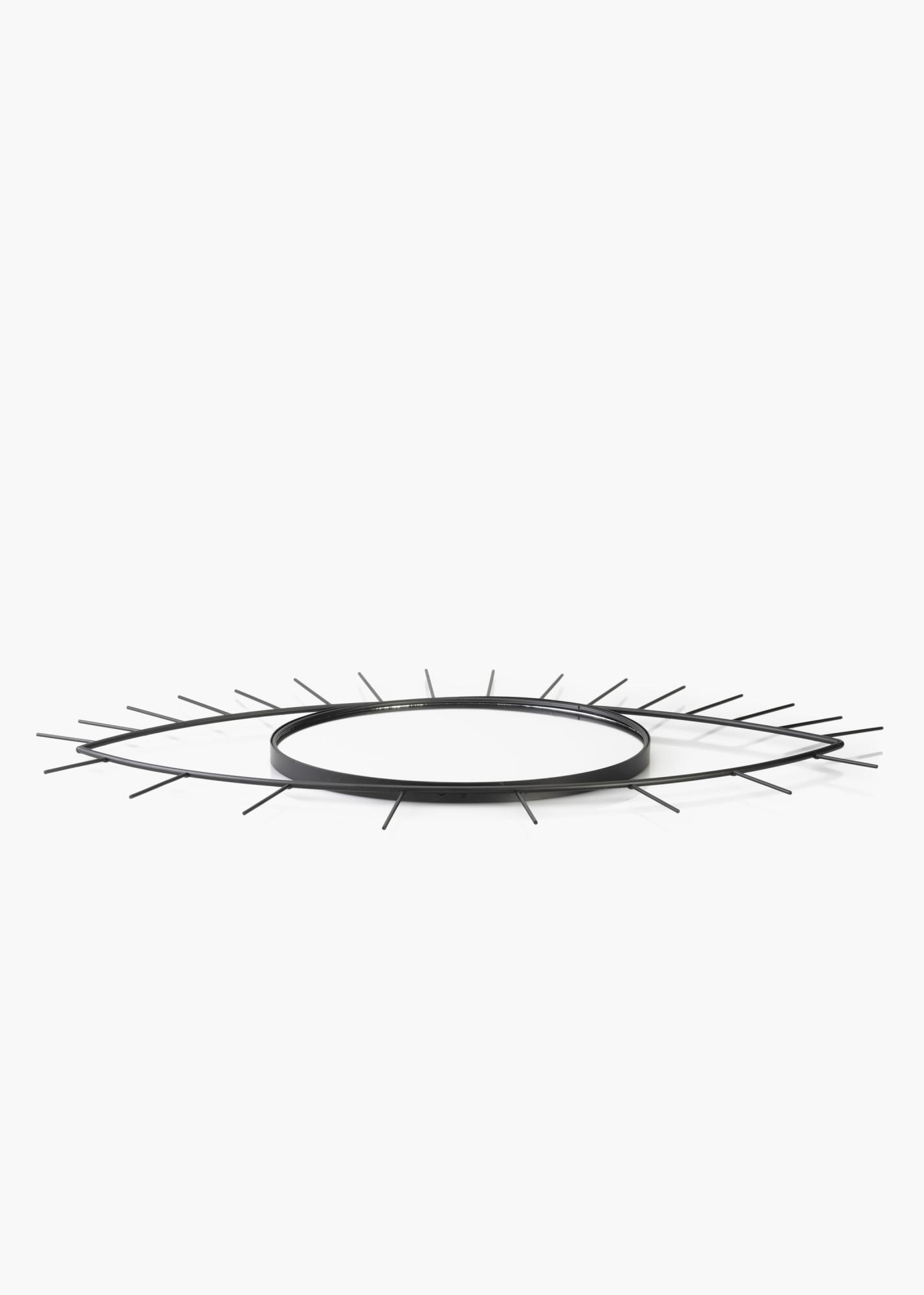 Tämä on todella ainutlaatuinen, silmäänpistävä seinäpeili. Sen muotoilu muistuttaa silmää, jota reunustavat pitkät metalliripset. Peilin runko on tyylikkään mustasävyinen ja sen mitat ovat 55x70 cm. Peilin boheeminen ilme soveltuu yhdistettäväksi osaksi tauluseinää omalaatuisen kokonaisuuden luomiseksi.