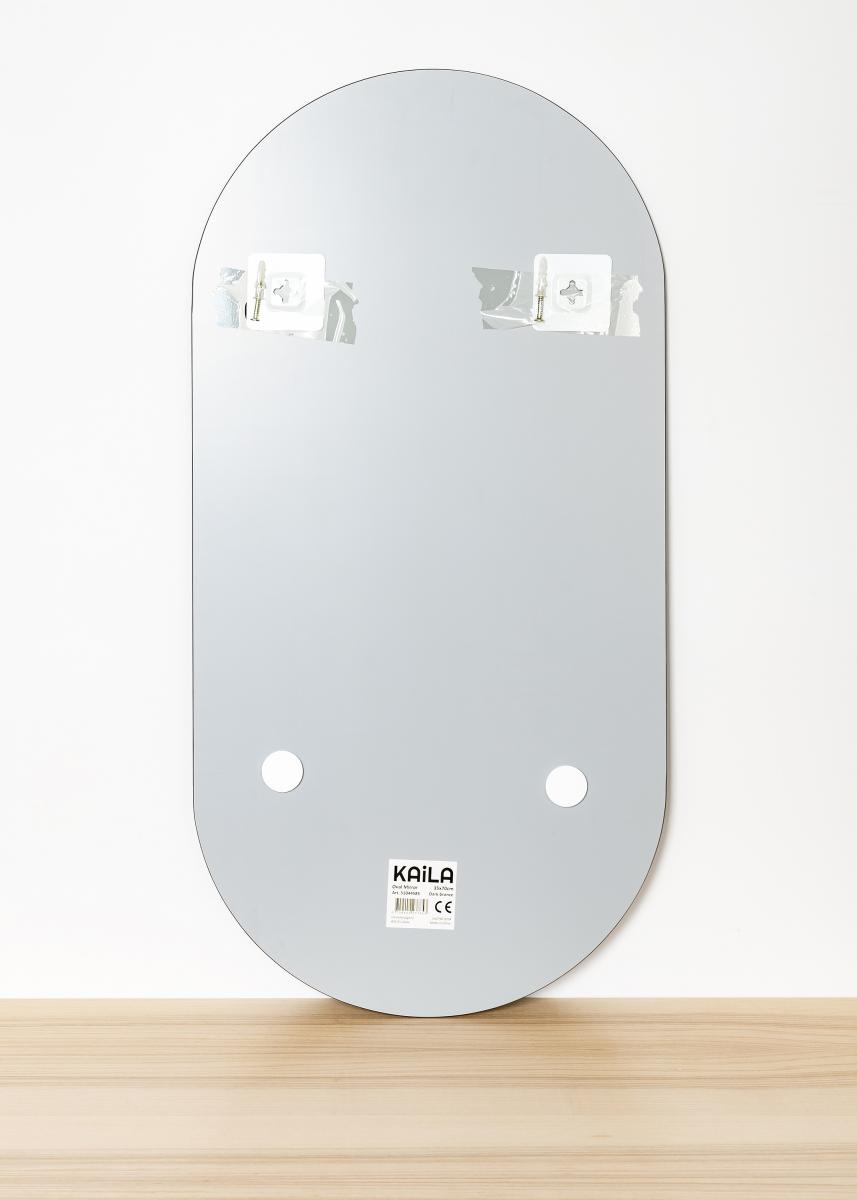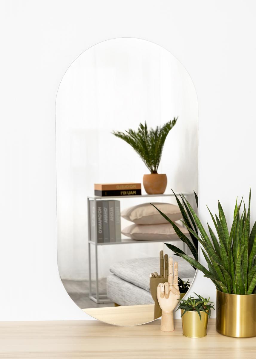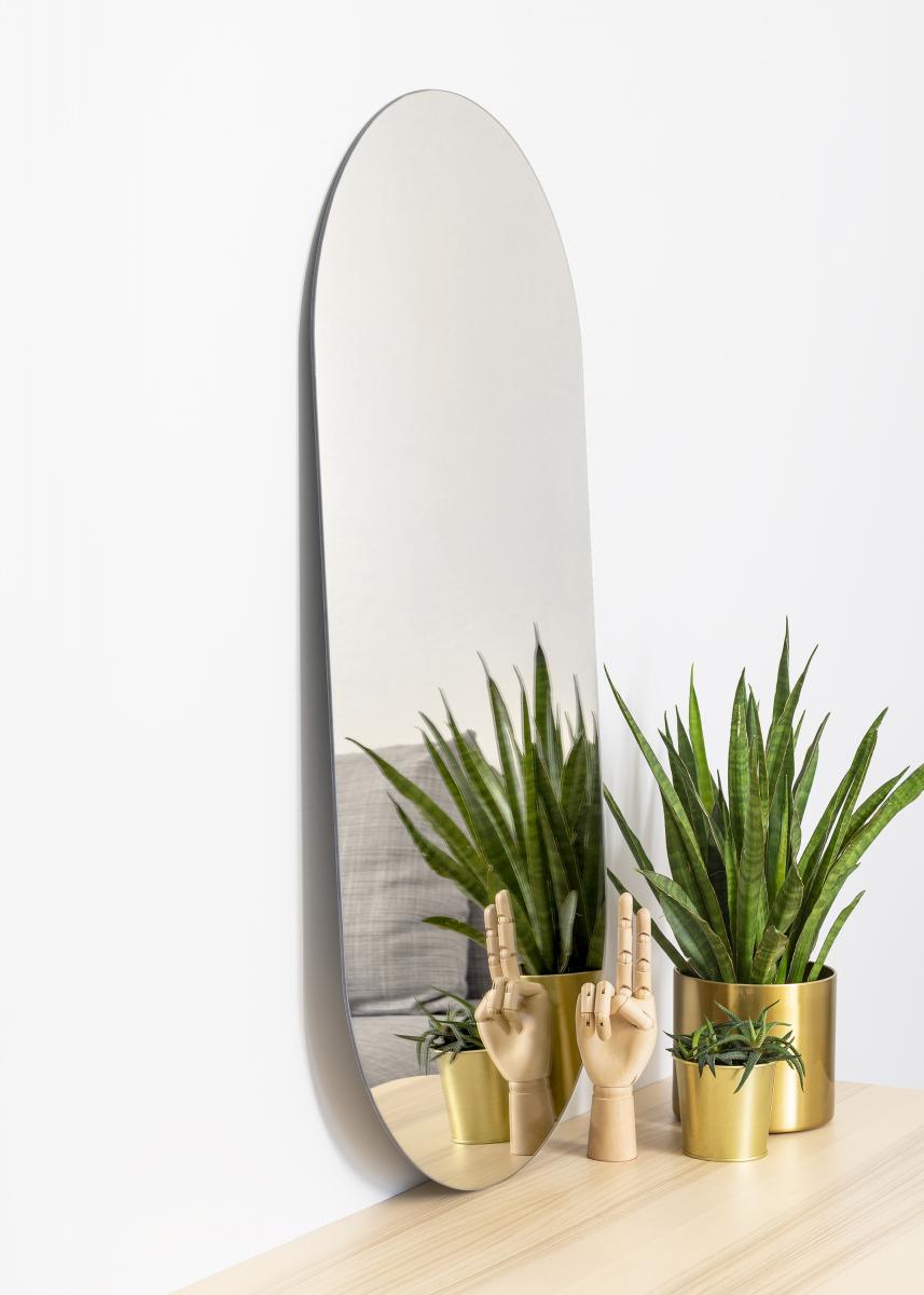 Tässä kauniissa peilissä on ovaali muoto, joka aikaansaa siihen pehmeän ja elegantin profiilin. Näitä ominaisuuksia vahvistaa peilin minimalistinen design, sillä peili on erittäin ohut eikä siinä ole lainkaan kehystä.