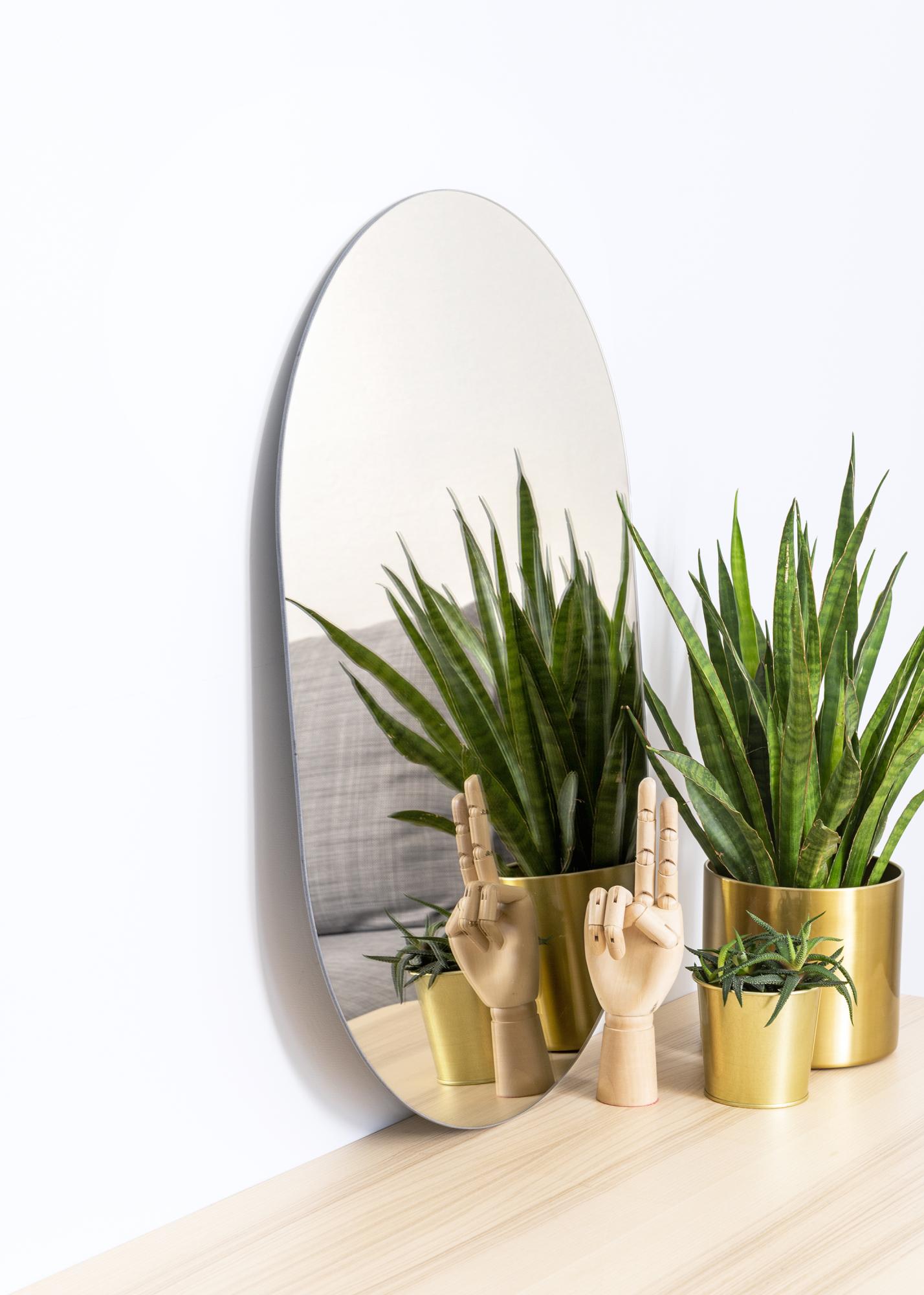 Tällaisella ovaalin muotoisella peilillä luot kotiisi pehmeän ja luokseen kutsuvan ilmapiirin. Tämä peili on ainoastaan 4 mm paksuinen, ja sen paksuus yhdessä pehmeän muodon kanssa aikaansaa erittäin elegantin seinäpeilin. Tämän peilin design on yhtä aikaa sekä moderni että ajaton, minkä ansiosta se sopii niin trendikkäisiin kuin klassisiin sisustuksiin.
