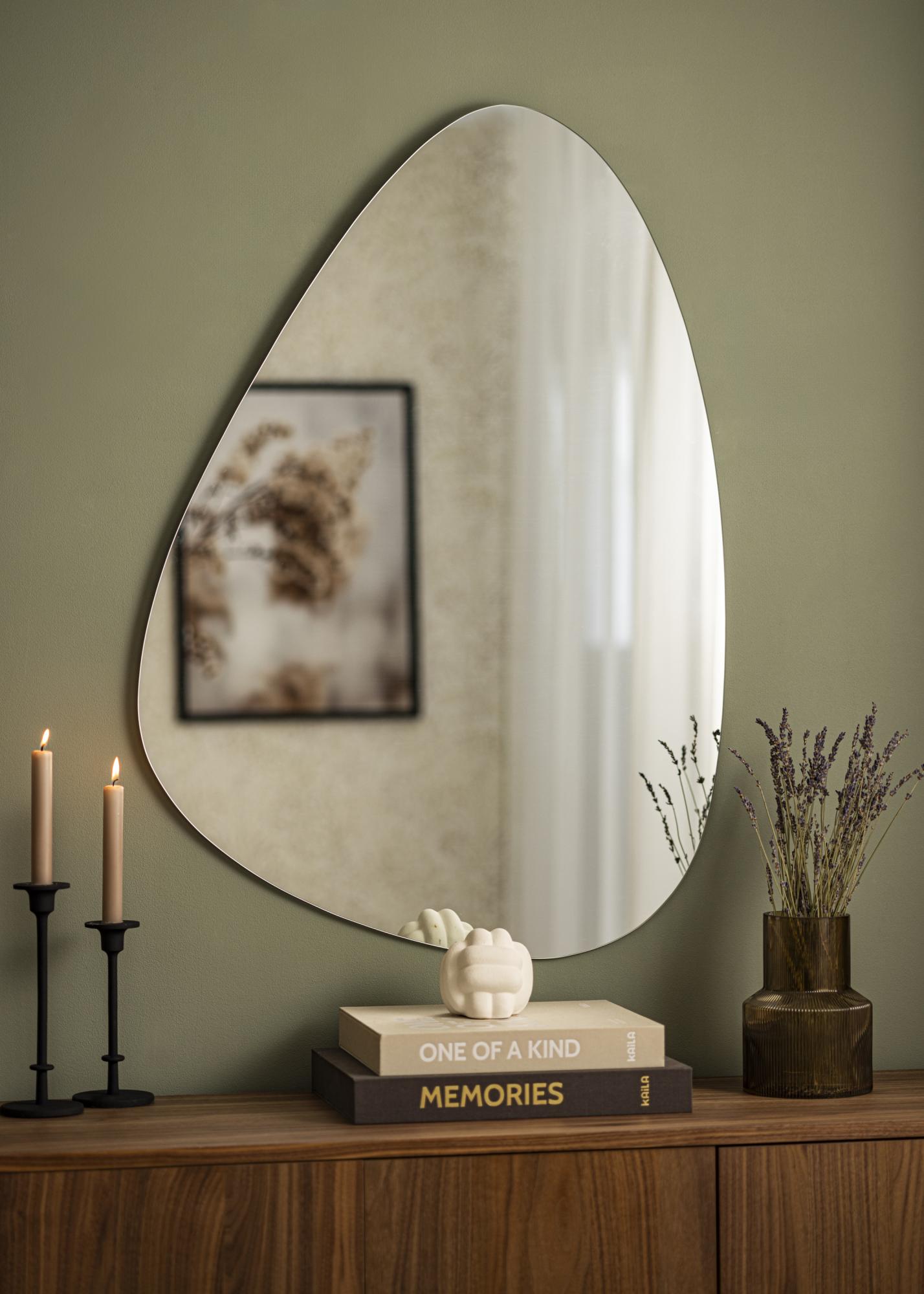 Epäsymmetrisestä peilistä tulee todella trendikäs yksityiskohta kotisi sisustukseen. Sijoita peili paikkaan, jossa sen koristeellisuus pääsee oikeuksiinsa, ja jossa se samalla täyttää käytännön tehtävänsä peilinä - esimerkiksi eteiseen, makuuhuoneeseen tai olohuoneeseen. Tätä peiliä on saatavilla useassa eri koossa, ja juuri tämä versio on kooltaan kokonaiset 70x100 cm.