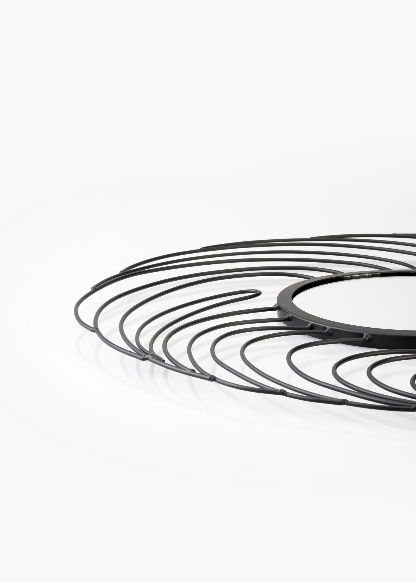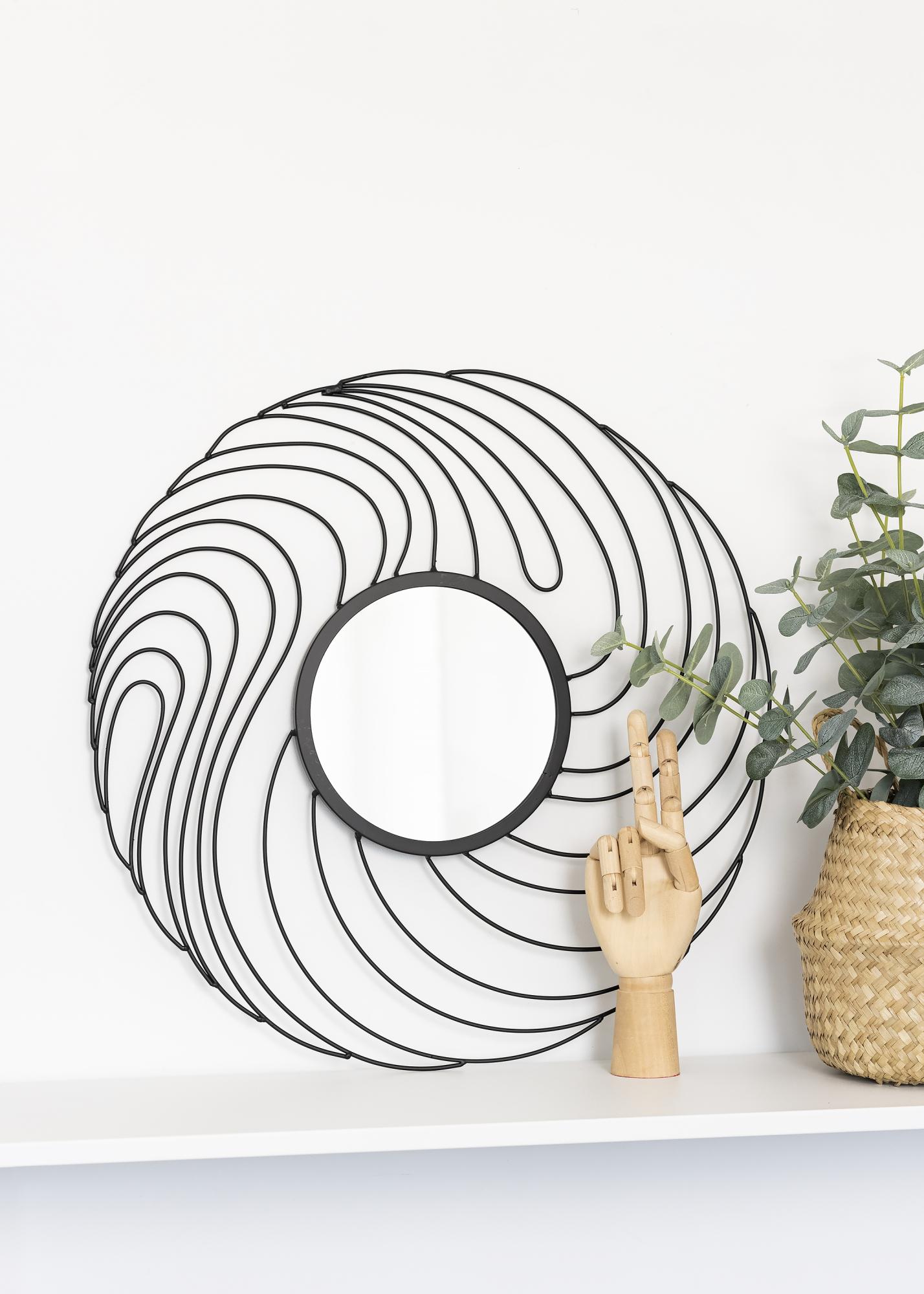 Storm on todella jännä ja ainutlaatuinen seinäpeili. Se on valmistettu metallista ja sen halkaisija on 50 cm. Pienempää peililasia kehystää musta pyörrekuvio. Peili on varustettu seinäkiinnikkeillä ja kirkkaalla peililasilla.