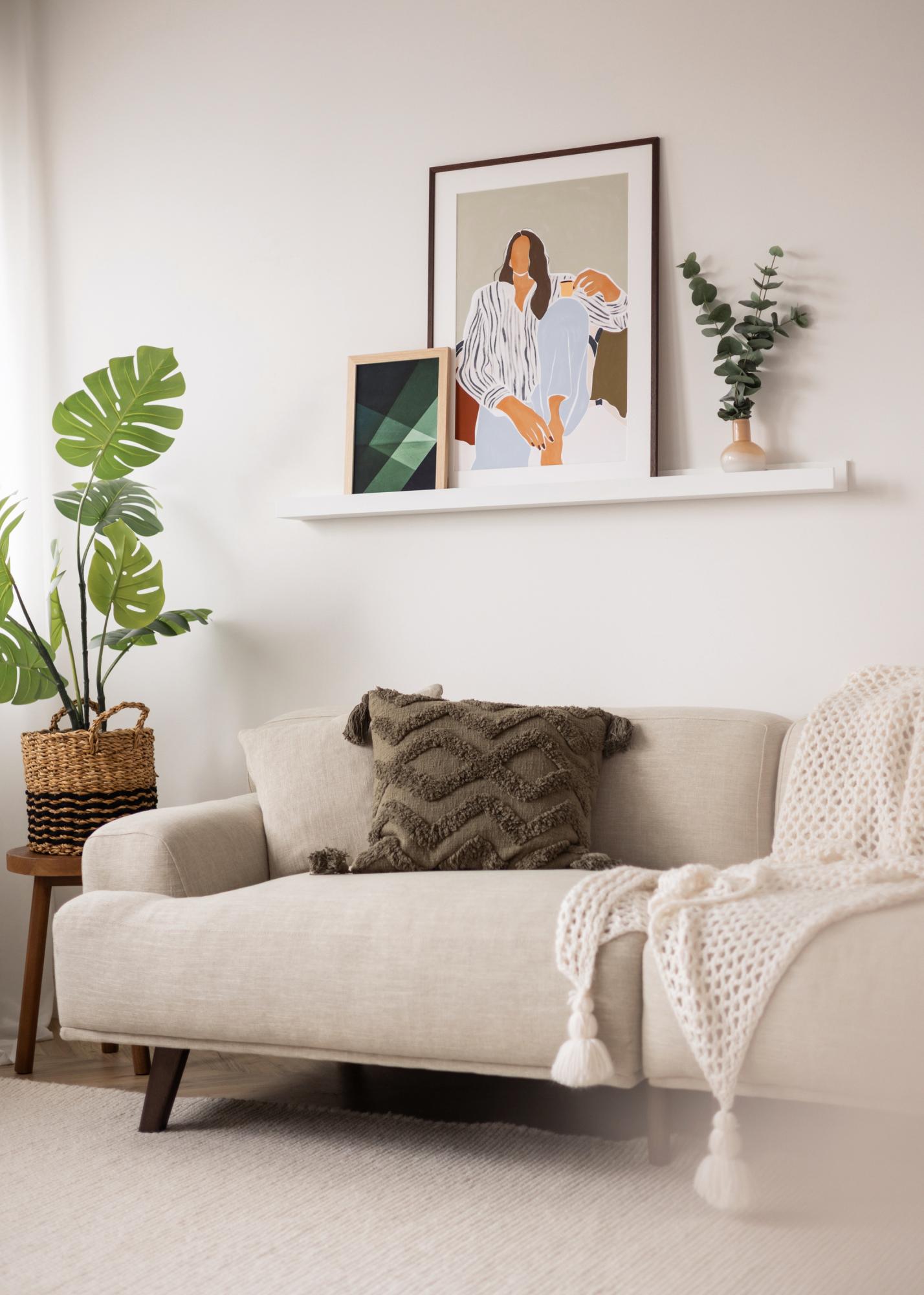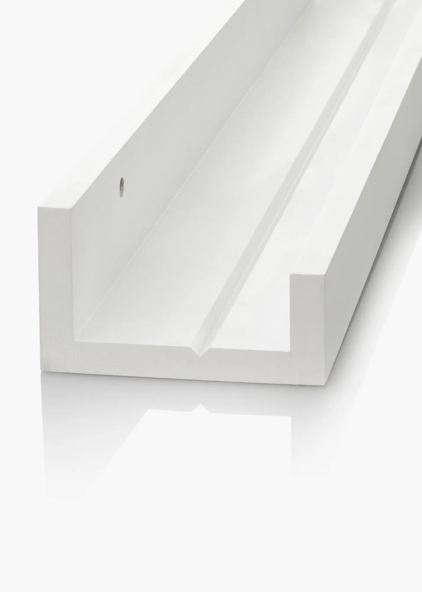 Käytännöllisellä tauluhyllyllä voit helposti ja tyylikkäästi esitellä ja vaihdella taulujasi! Tämä elegantti taululista on valmistettu MDF:stä ja se on maalattu valkoiseksi kauniilla, puolikiiltävällä pinnalla. Muotoilu on tyylikäs yksinkertaisin, suorin linjoin ja ajattoman minimalistisella tunnelmalla. Hyllytason keskellä kulkee uritettu kouru, joka tukee taulujasi ja antaa niille täydellisen kulman, kun ne nojaavat seinää vasten. Tauluhyllyssä on myös esiporatut reiät, ja pakkaukseen sisältyy sopivat ruuvit ja tulpat, jotka tekevät asennuksesta hieman helpompaa!
