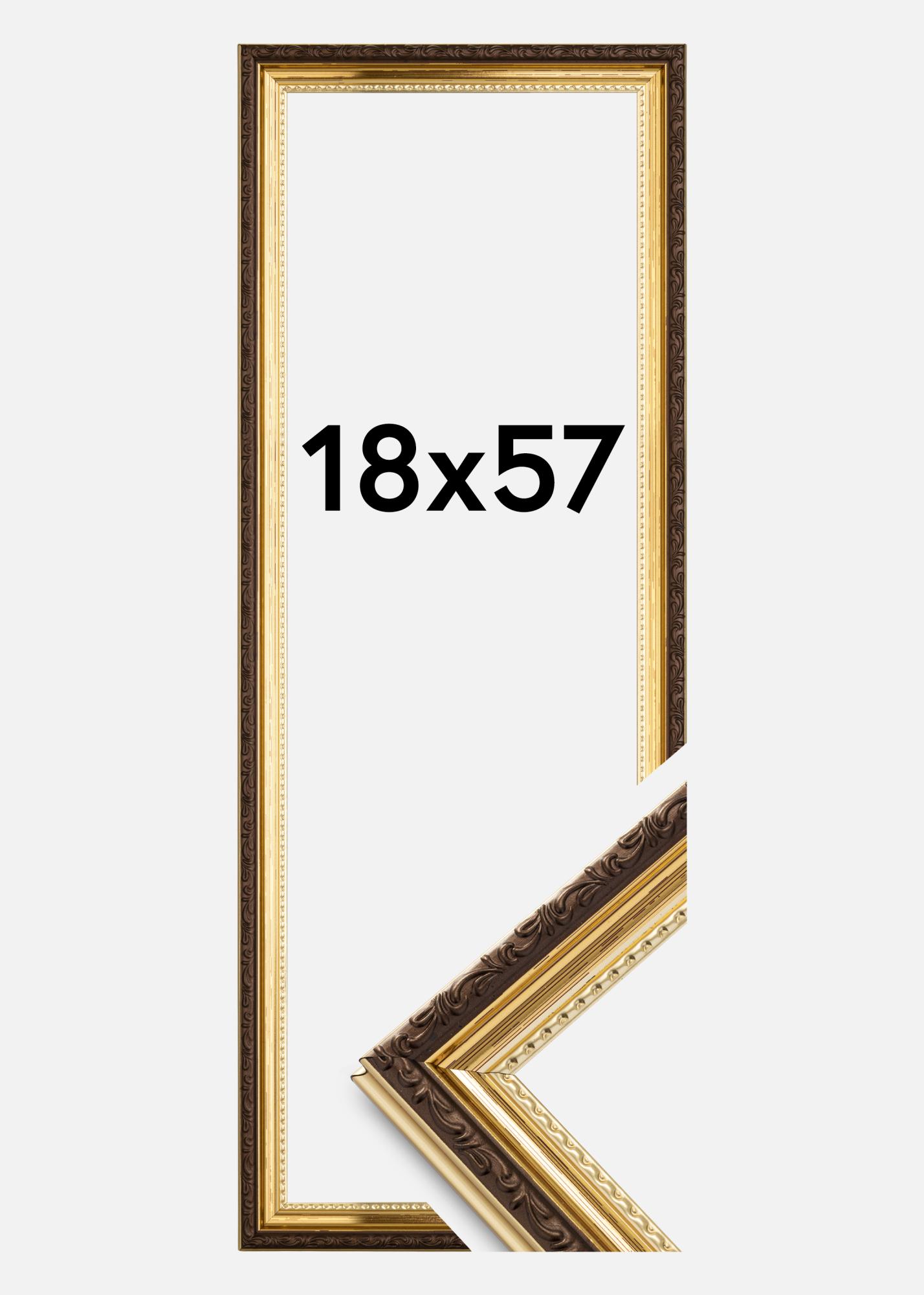 Kaipaatko vanhanmallista, kauniisti koristeltua taulunkehystä? Abisko Akryylilasi Kullanvärinen on jykevä, upeasti koristeltu kultainen kehys. Kehyksen 25 mm leveä profiili on kiiltävän kultainen ja sen keskiosaa kiertää ruskea boordi. Taulunkehyksen kultaista reunaa lähimpänä lasia koristaa aaltoileva kuvio.