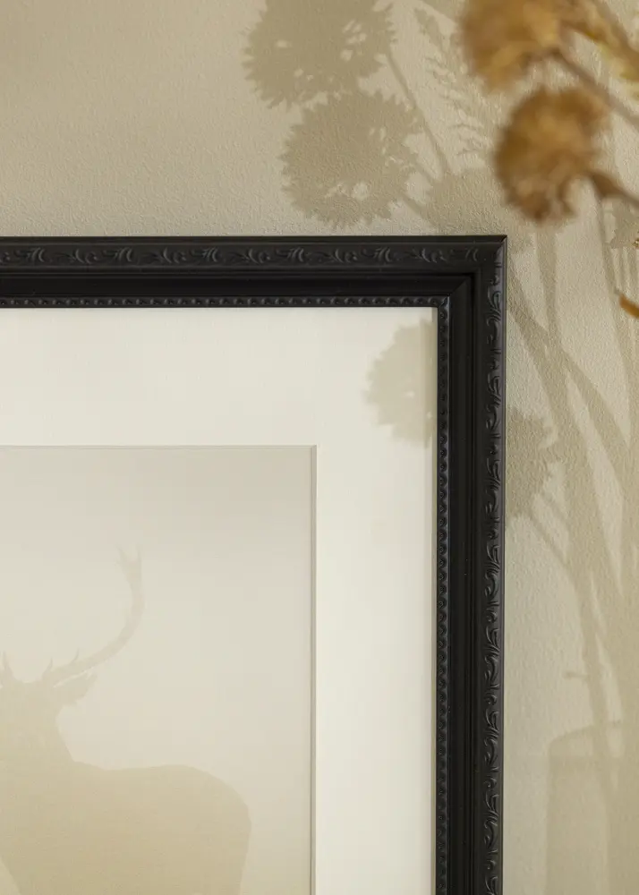Abisko Akryylilasi Musta on tyylikäs, ruotsalaisvalmisteinen taulunkehys. Mustan kehysprofiilin ulko- ja sisäreunaa koristavat viehättävät somisteet. 25 mm leveän kehyslistan koristeet tekevät kehyksestä tyylikkään sisustuselementin, joka täydentää niin klassisia kuin modernejakin kuva-aiheita. Tällä kehyksellä voit kehystää yhtä hyvin abstraktin julisteen kuin mustavalkoisen valokuvan.
