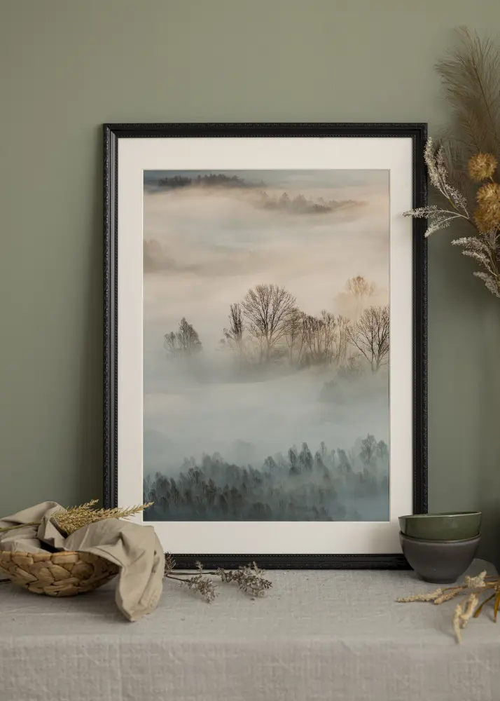 Passepartout korostaa kuvaa ja luo tyylikkään kokonaisuuden samalla kun se suojaa kuvaa olemasta suoraan lasia vasten – lopputuloksena kauniimpi ja kestävämpi kehystys.