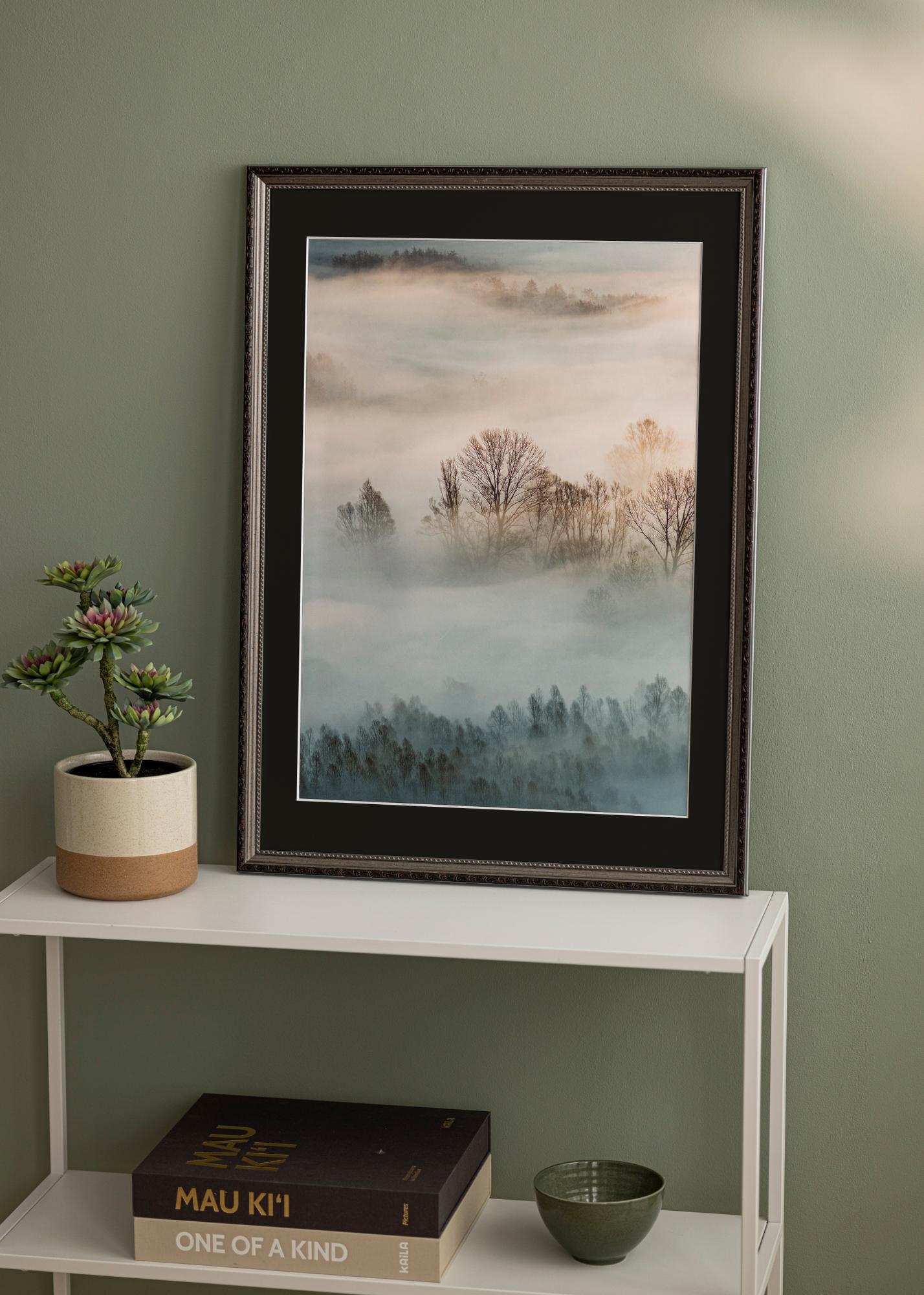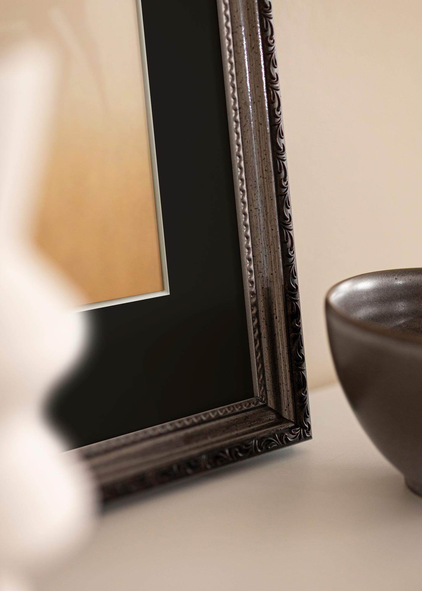 Paketti, johon kuuluu kehys ja kehykseen sopiva musta paspatuuri. Tuotekuvassa näet kehyksen mitat (lihavoituna) ja paspatuurin sisämitat (suluissa). Huomioi, että paspatuurin sisämittojen tulee olla aina 1 cm pienemmät kuin haluttu kuvakoko.
