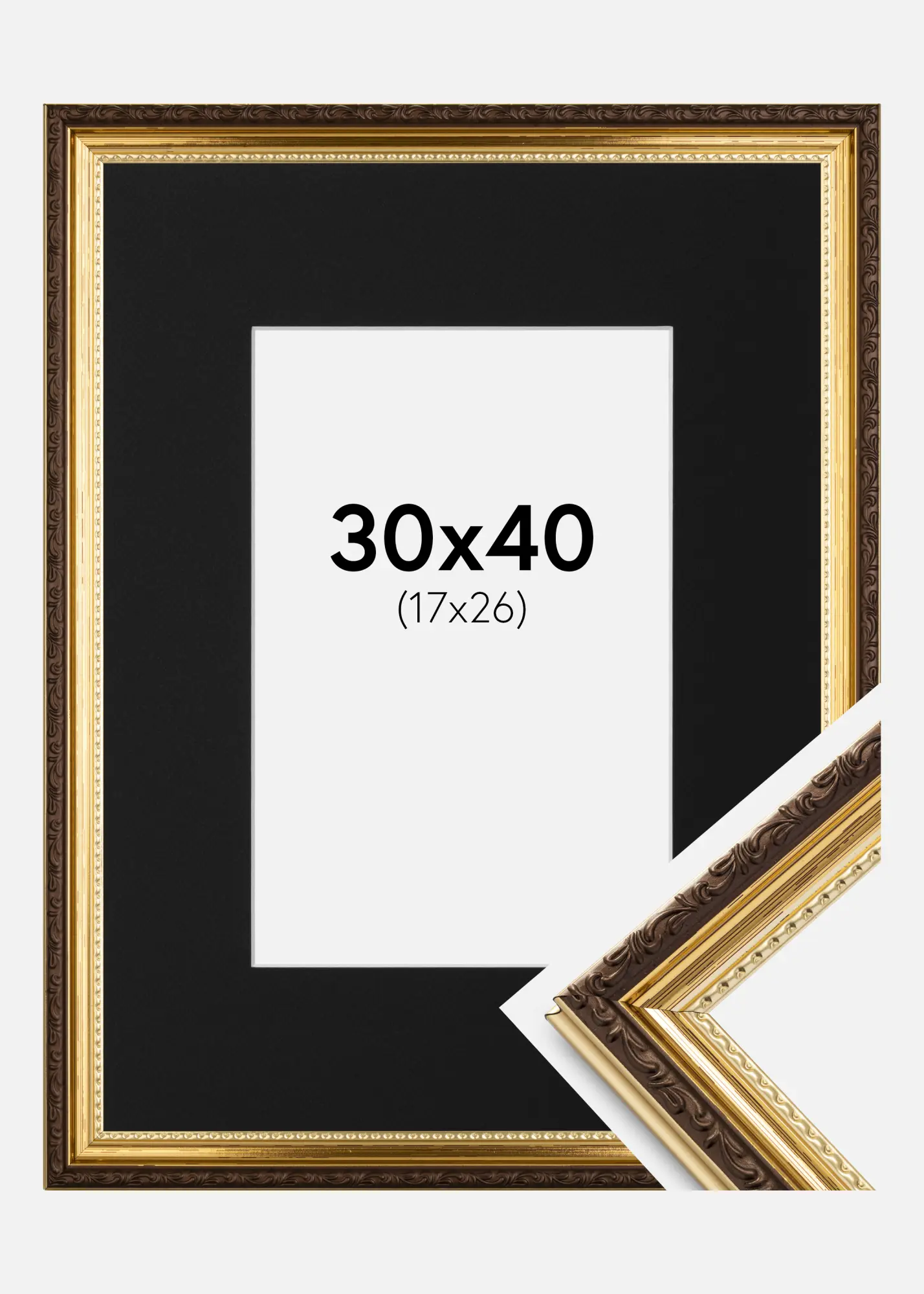 Kehys Abisko Kulta 30x40 cm - Paspatuuri Musta 18x27 cm