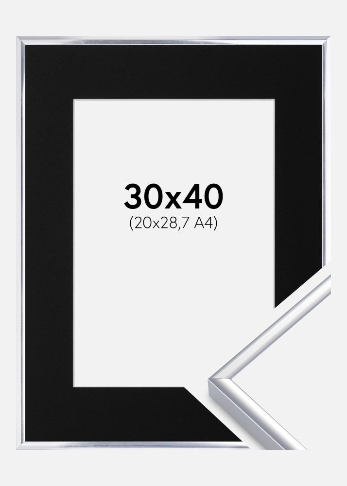 Kehys Alumiini Kiiltävä Hopea 30x40 cm - Paspatuuri Musta 21x29,7 cm (A4)