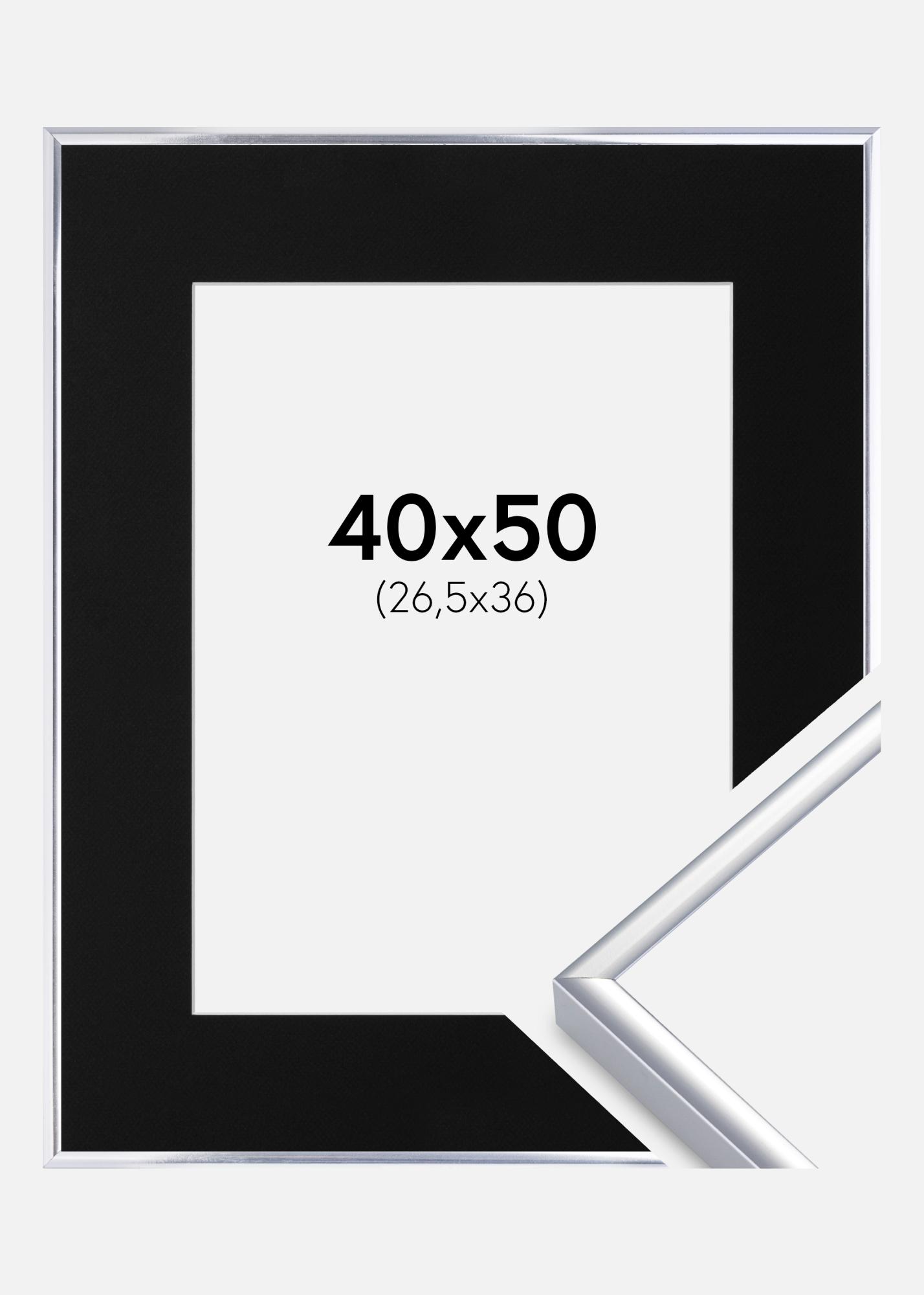 Kehys Alumiini Kiiltävä Hopea 40x50 cm - Paspatuuri Musta 27,5x37 cm