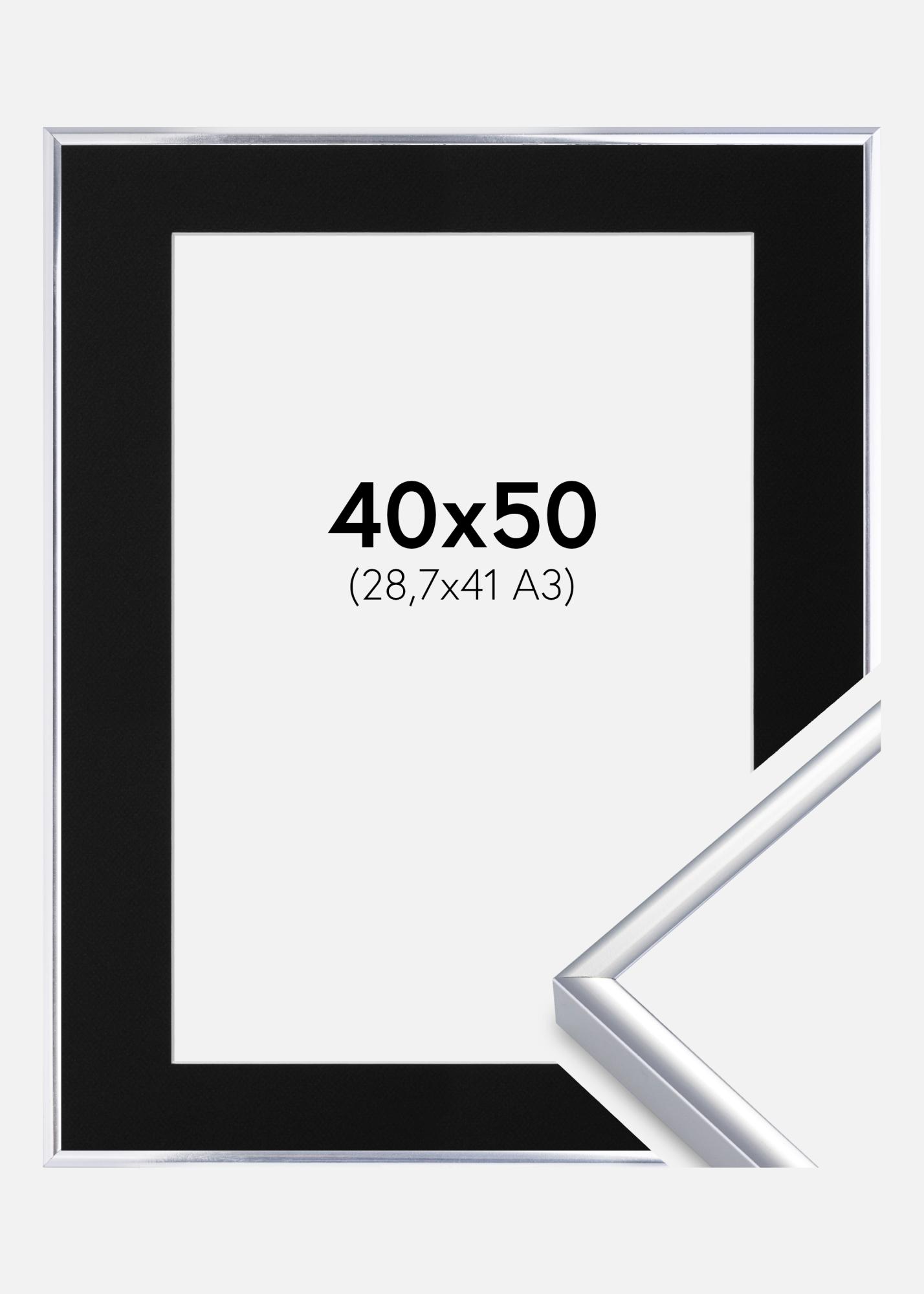 Kehys Alumiini Kiiltävä Hopea 40x50 cm - Paspatuuri Musta 29,7x42 cm (A3)