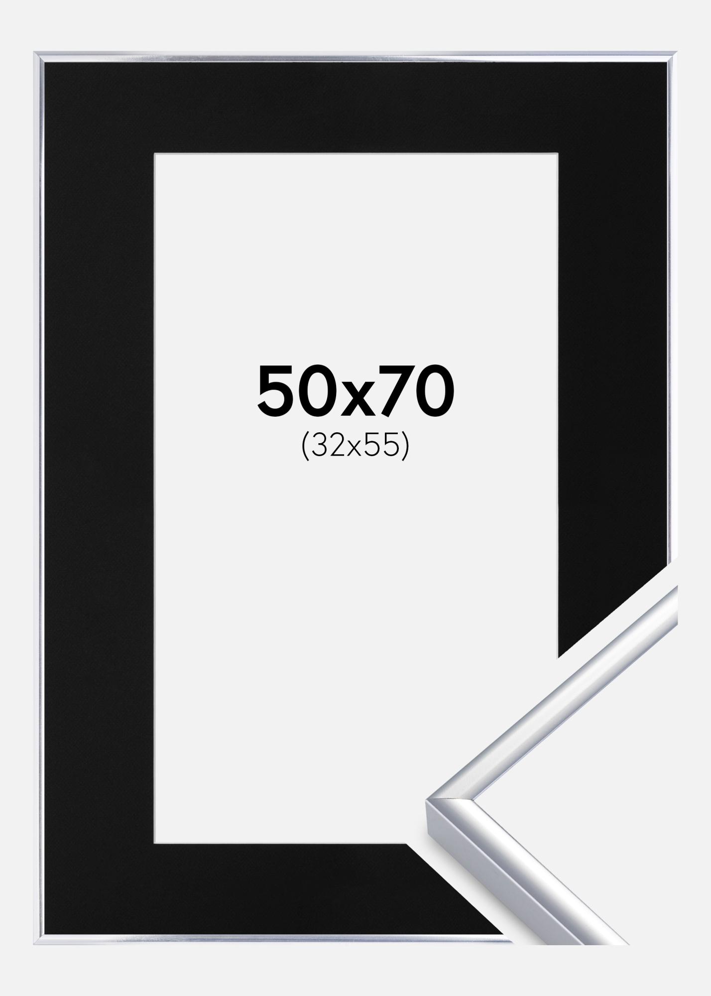 Kehys Alumiini Kiiltävä Hopea 50x70 cm - Paspatuuri Musta 33x56 cm