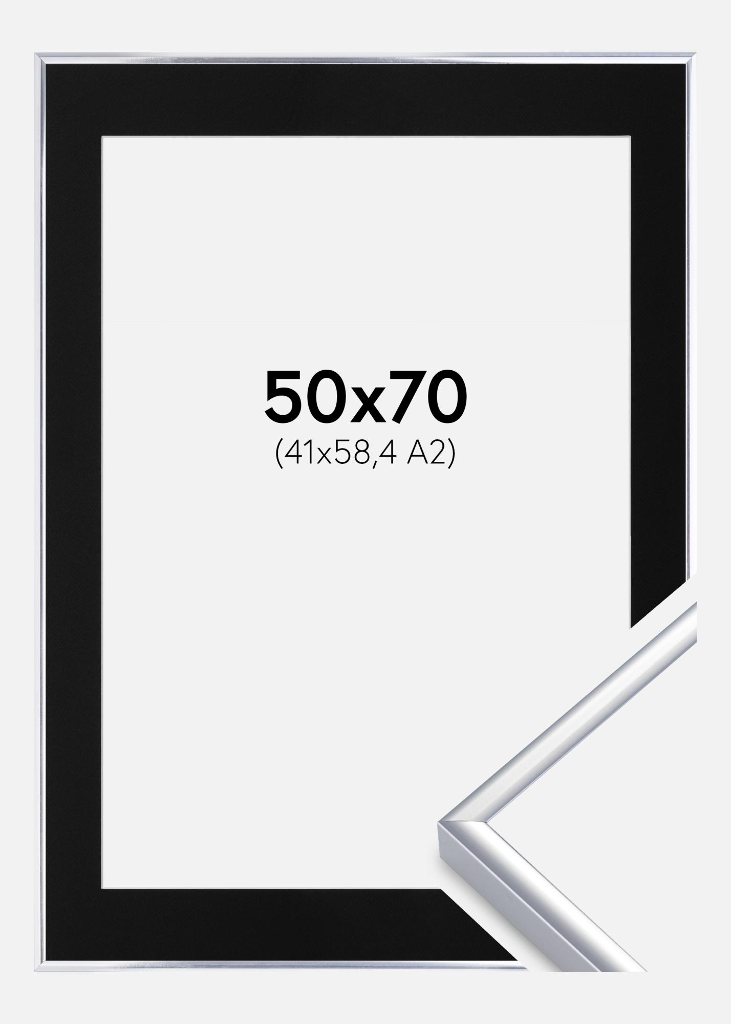 Kehys Alumiini Kiiltävä Hopea 50x70 cm - Paspatuuri Musta 42x59,4 cm (A2)
