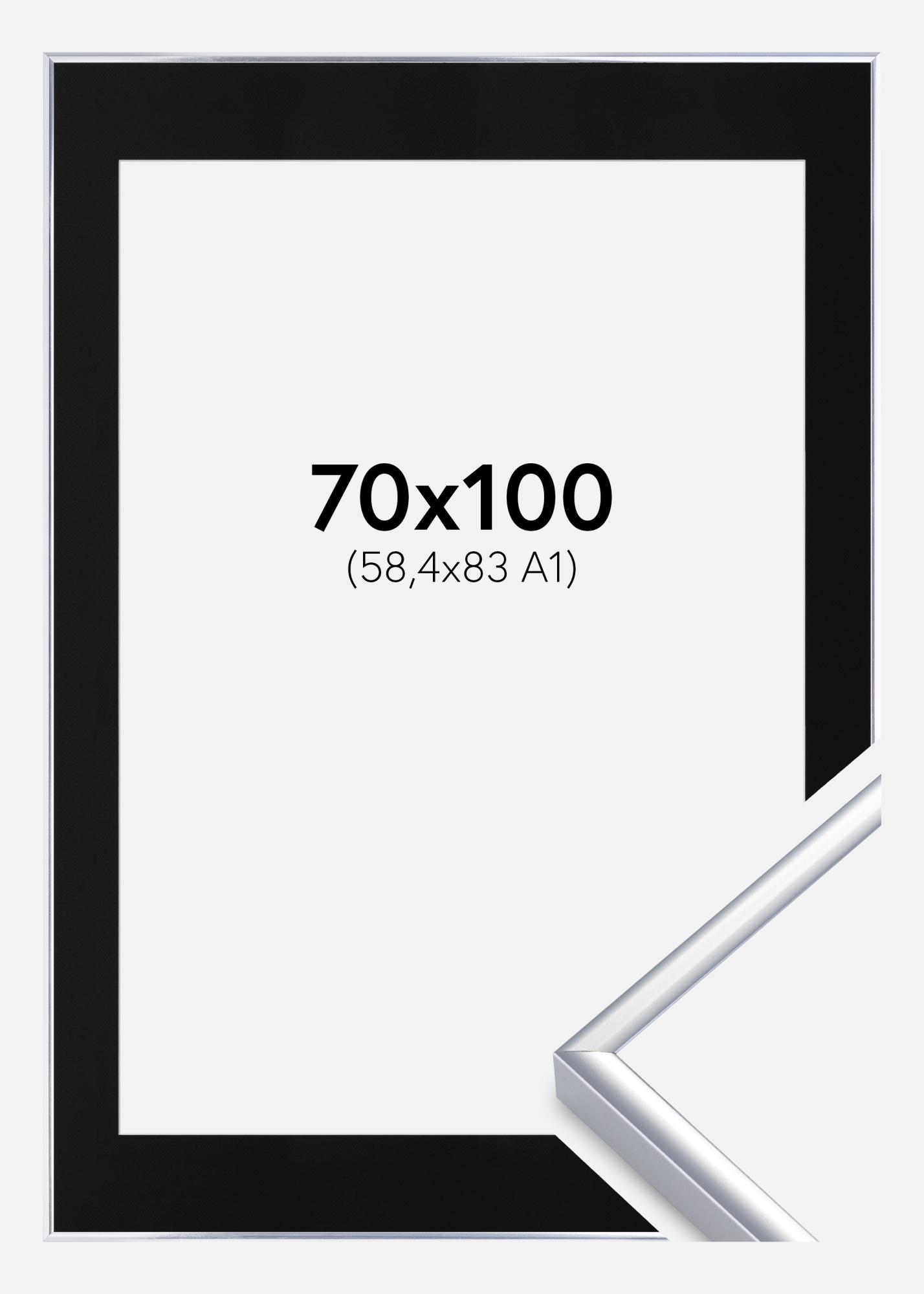 Kehys Alumiini Kiiltävä Hopea 70x100 cm - Paspatuuri Musta 59,4x84 cm (A1)