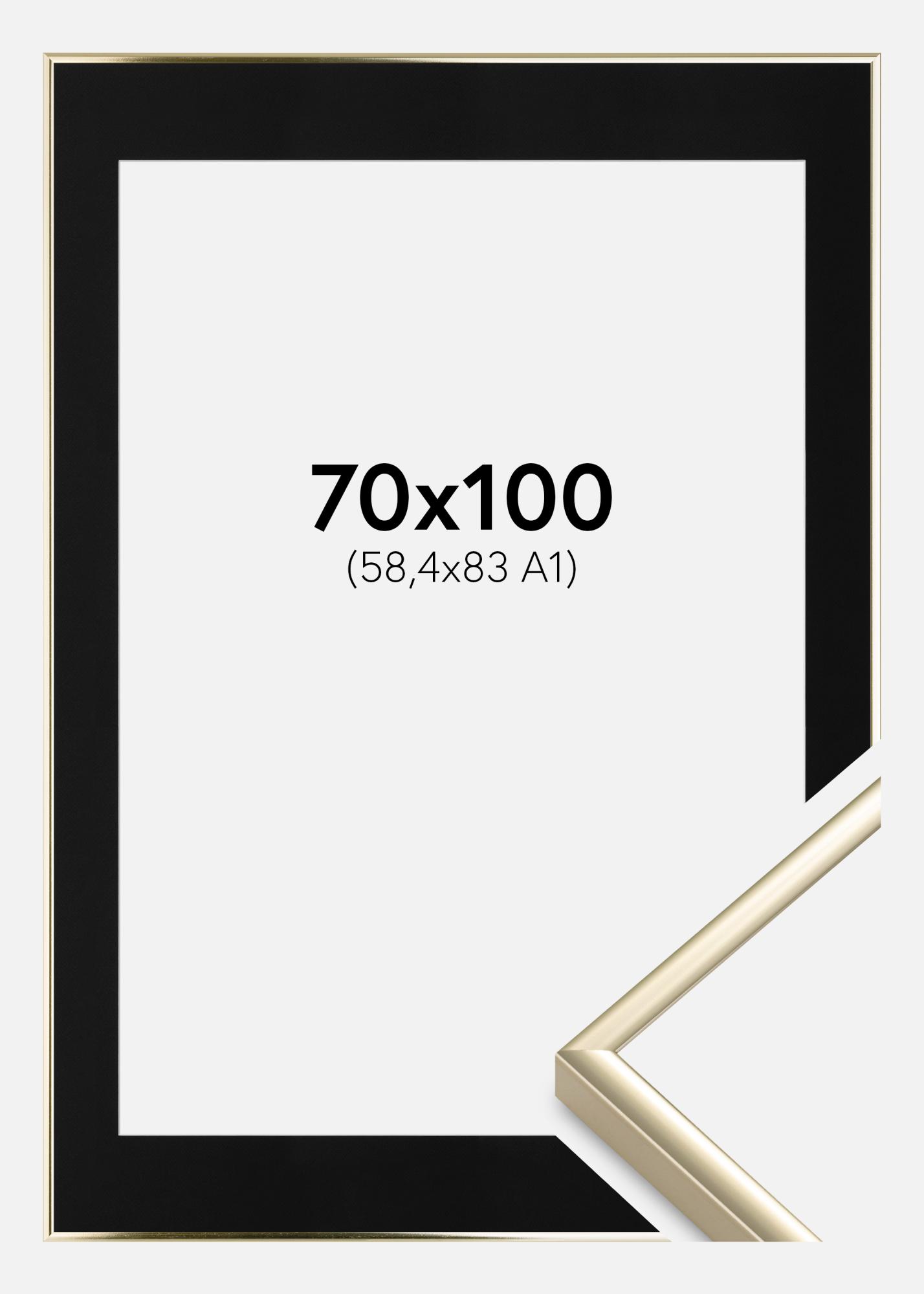 Kehys Alumiini Kiiltävä Kulta 70x100 cm - Paspatuuri Musta 59,4x84 cm (A1)