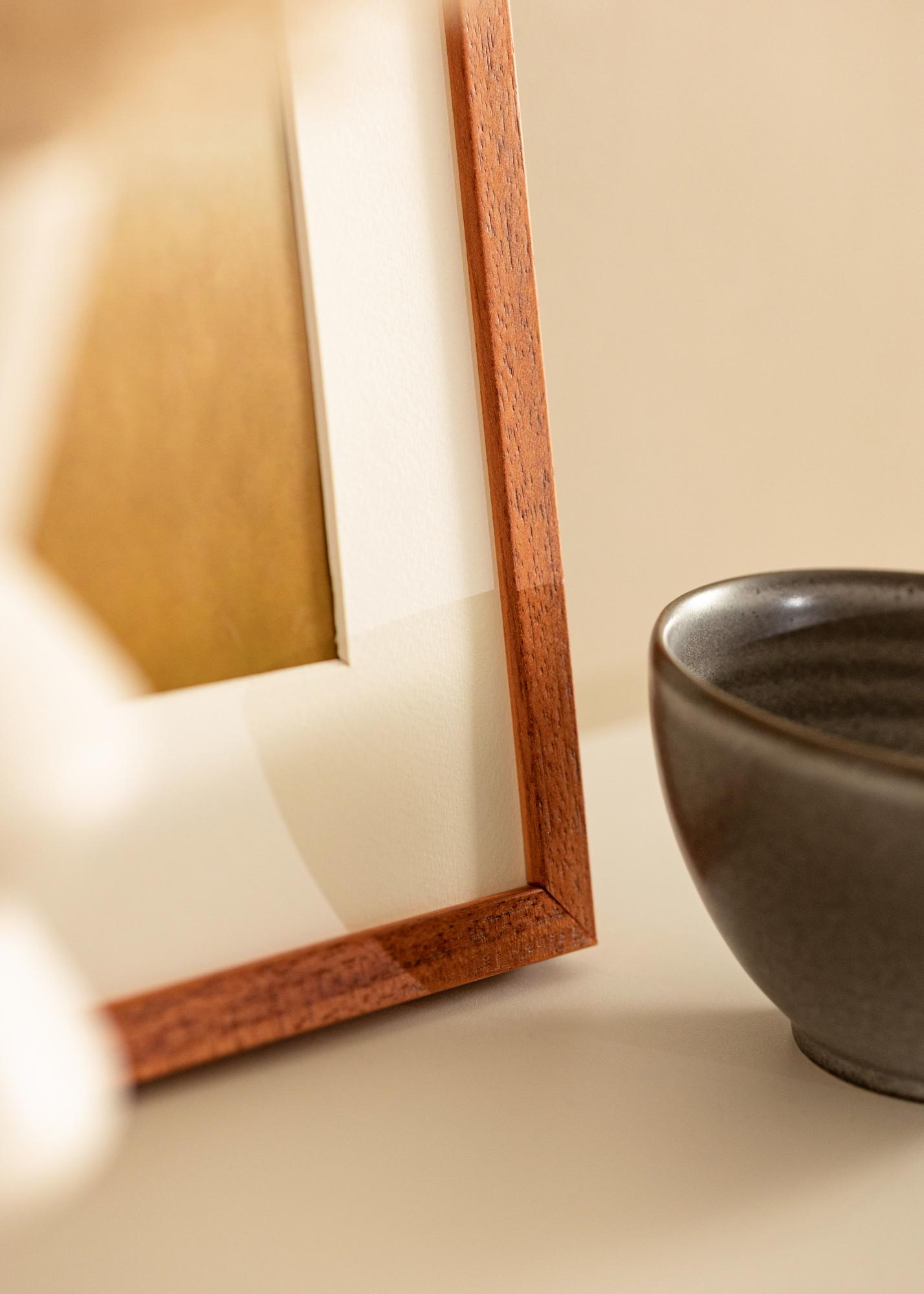 15 mm leveä kehyslistä on valmistettu kestävästä ayosa puusta, mikä antaa sille vakaan ja kestävän rakenteen. Kehys ei ole vain tyylikäs, vaan myös käytännöllinen, varustettu taipuisilla metalliliittimillä, jotka helpottavat kuvan asennusta ja vaihtamista.