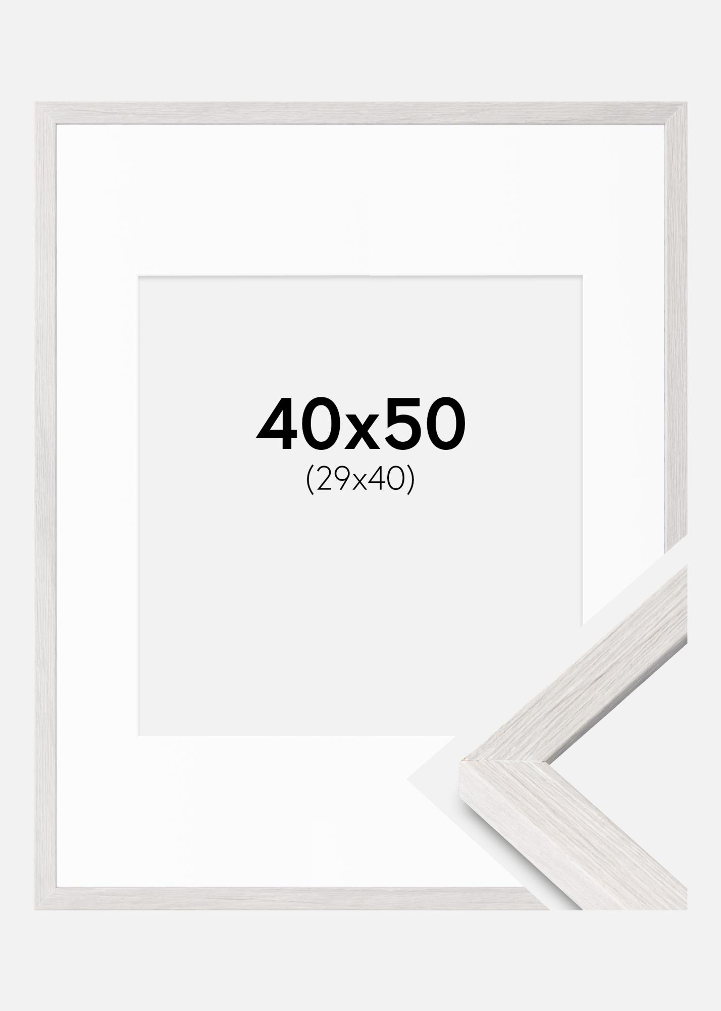 Kehys Ares Valkoista Tammi 40x50 cm - Passepartout Valkoista 30x41 cm