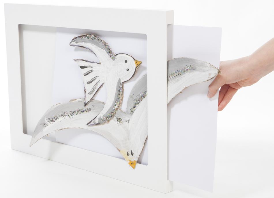 Tämä kehys viimeistelee lastesi taideteokset ainutlaatuisiksi lahjoiksi niin sukulaisille kuin ystävillekin, tai miksei itse pienelle taiteilijalle, joka voi koristaa huoneensa seinät omilla teoksillaan. Kehyksessä ei ole lasisuojaa, joten sen voi käyttää myös erilaisten kolmiulotteisten kollaasien, helmitaulujen tai pastataulujen kehystykseen. Ainoastaan mielikuvitus on rajana!