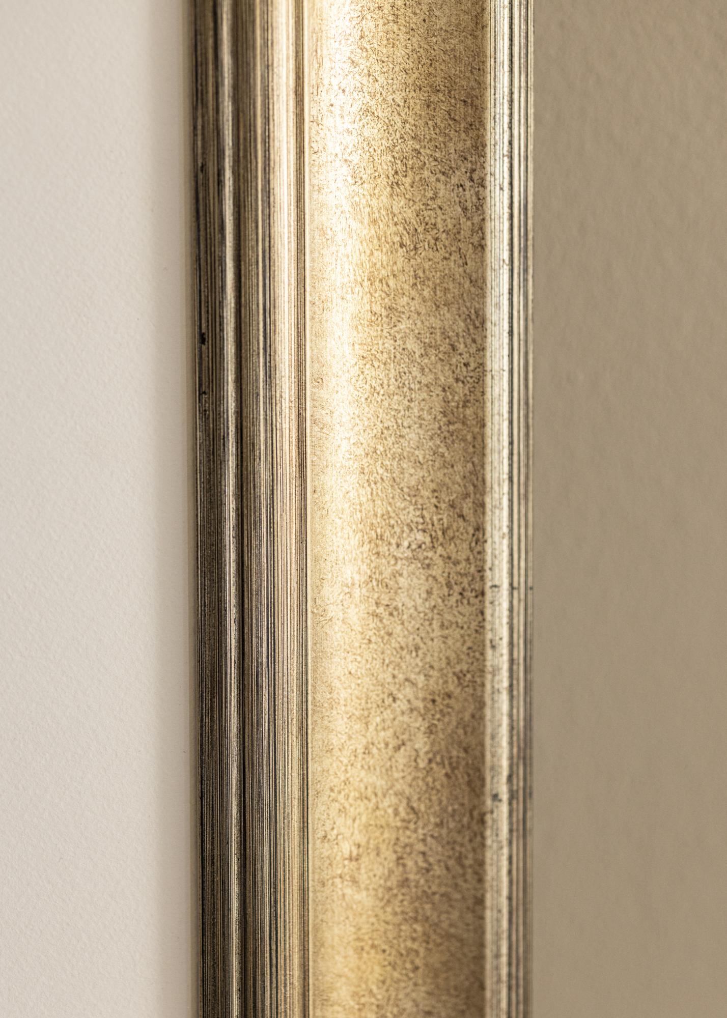 Ohuet, lineaariset koristeet reunoilla lisäävät kehyksen eleganttia ilmettä, kun taas harjattu pinta hienovaraisilla värivaihteluilla korostaa sen syvyyttä ja rakennetta. Tumma hopeasävy luo klassisen ja ajattoman tunnelman, joka sopii useimpiin sisustustyyleihin.