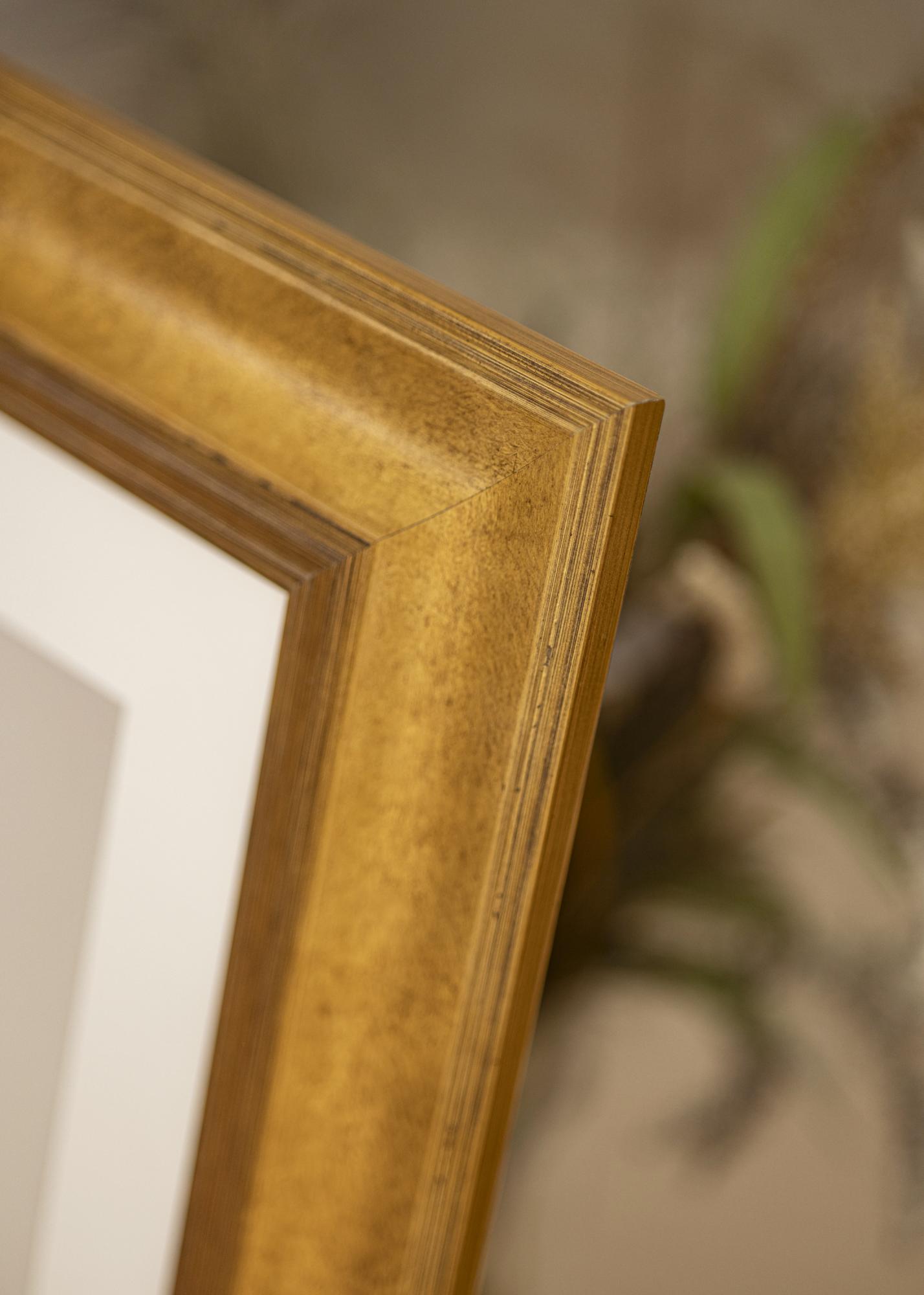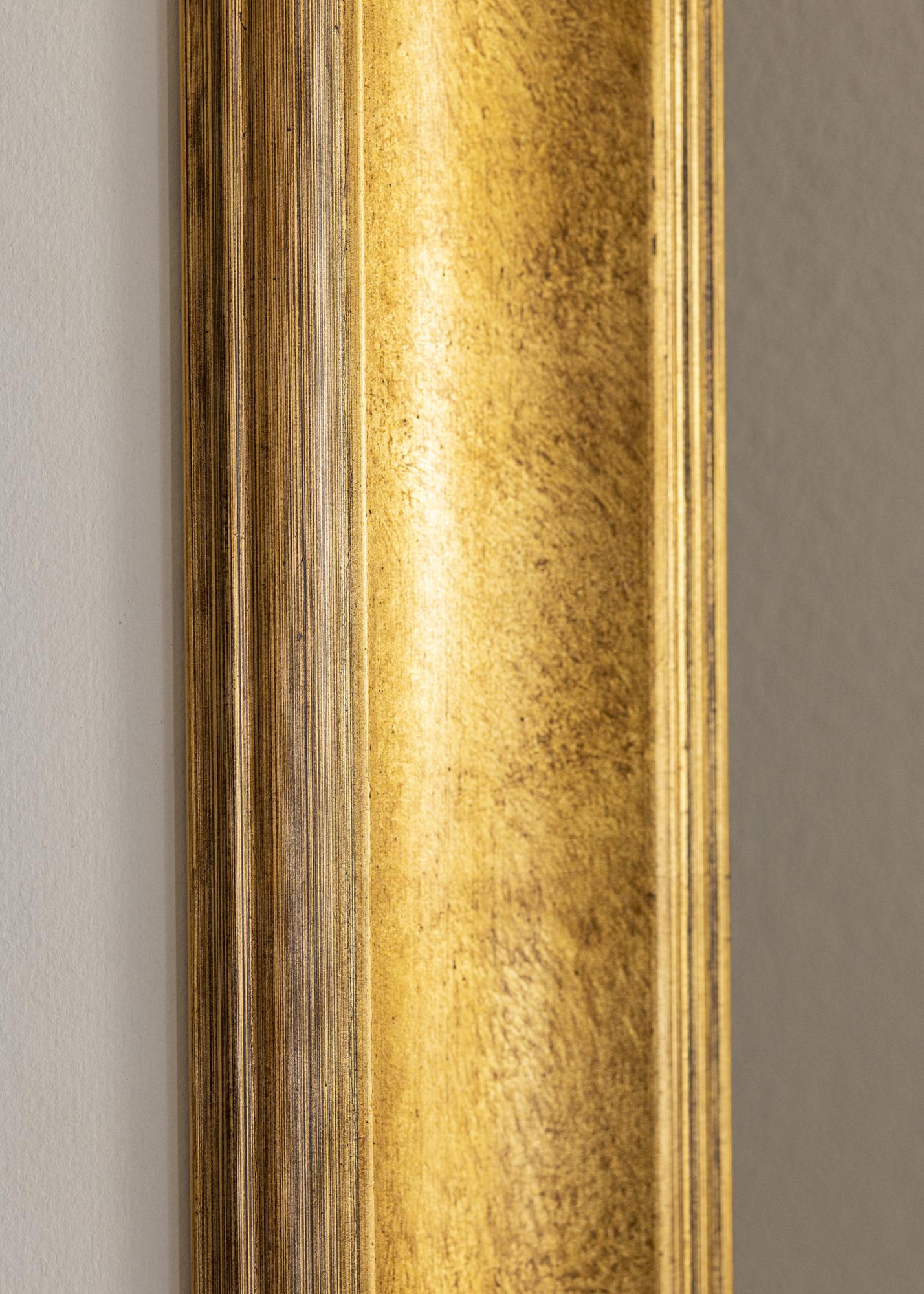 Kehys on valmistettu männystä ja siinä on ohuet linjat reunoja pitkin, jotka lisäävät hienostunutta yksityiskohtaisuutta. Lämmin kultasävy tuo ajattoman eleganssin, joka sopii täydellisesti sekä moderniin että perinteiseen sisustukseen. Koska jokainen kehys valmistetaan tilauksesta omassa kehysverstaassamme, voit olla varma, että saat tuotteen, joka on räätälöity erityistarpeidesi mukaan.