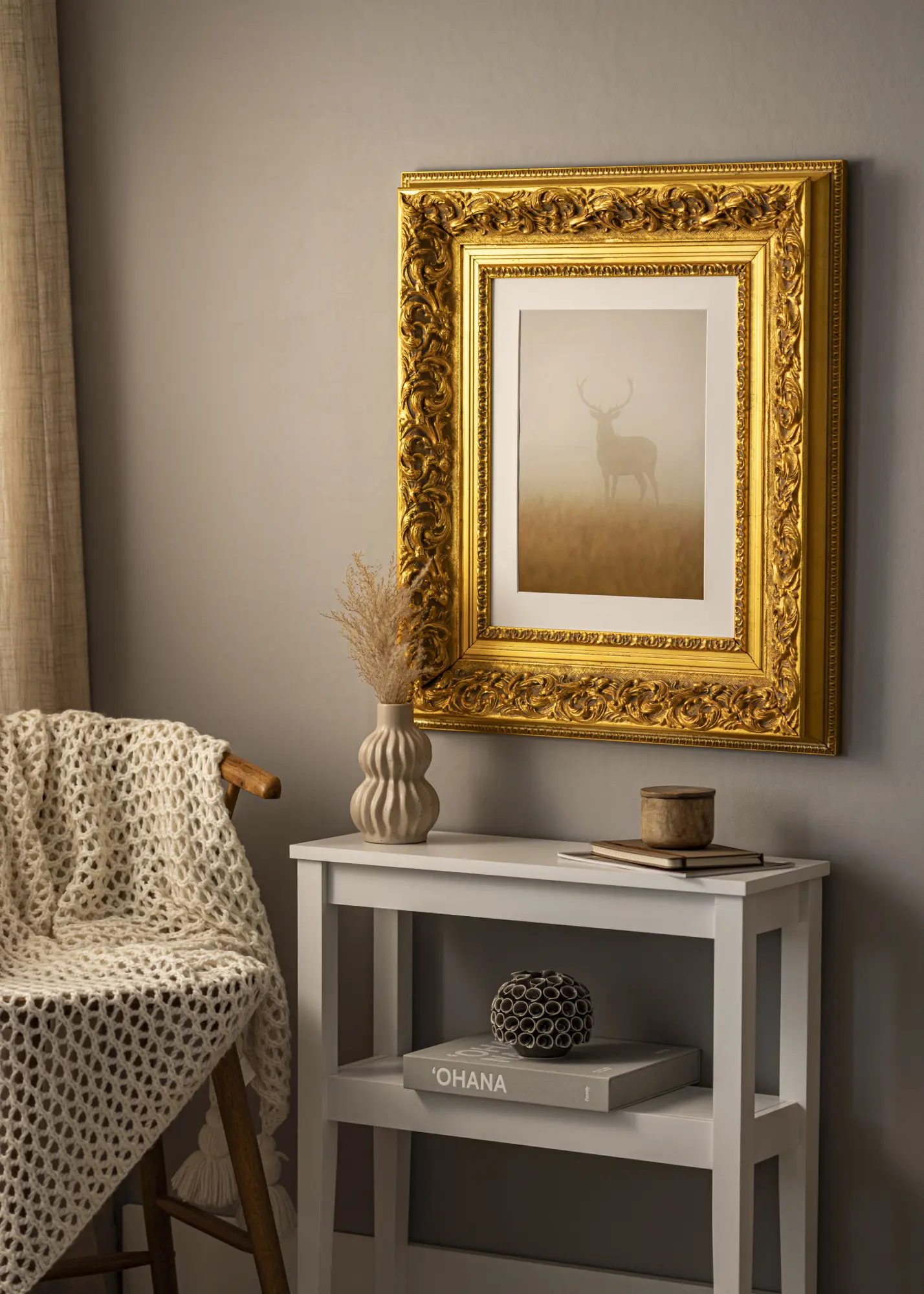 Birmingham Kulta -kehyksemme on mittatilaustyönä valmistettu taulukehys, joka valmistetaan omassa kehysverstaassamme. Syvän kultaisen sävynsä ja klassisen barokkimuotoilunsa ansiosta se on tyylikäs lisä mihin tahansa huoneeseen. Tässä valokuvakehyksessä on 152 mm leveä lista ja 74 mm syvyys, mikä antaa sille vaikuttavan läsnäolon seinällä.