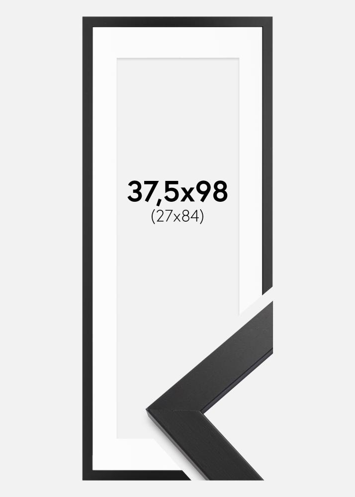 Kehys musta puu 37,5x98 cm - Passepartout Valkoista 28x85 cm