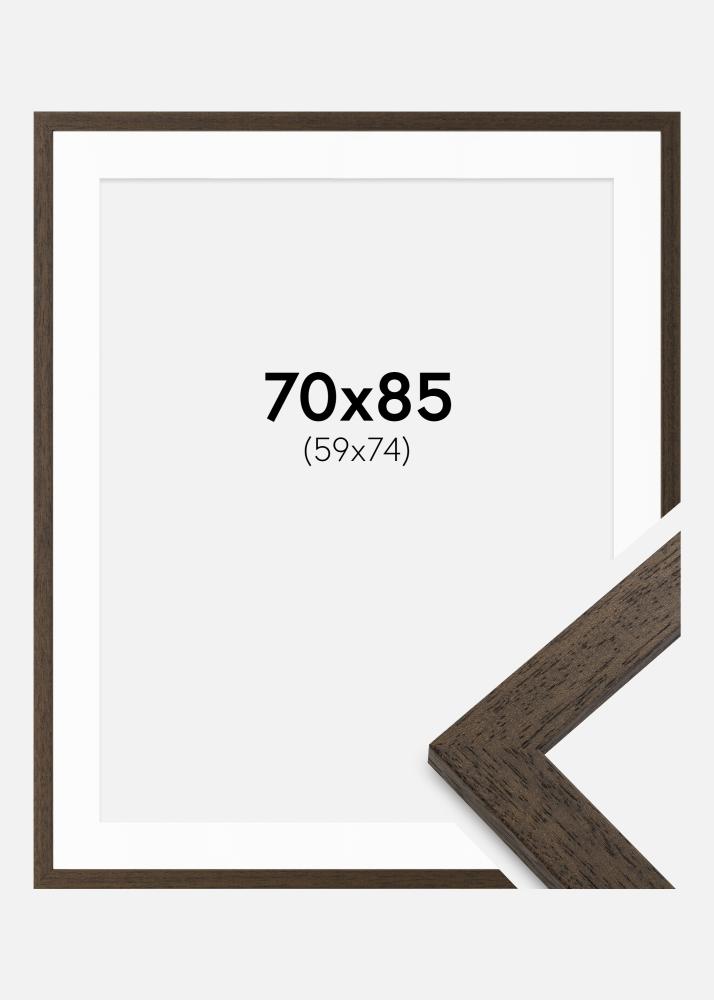 Kehys ruskea puu 70x85 cm - Passepartout Valkoista 60x75 cm