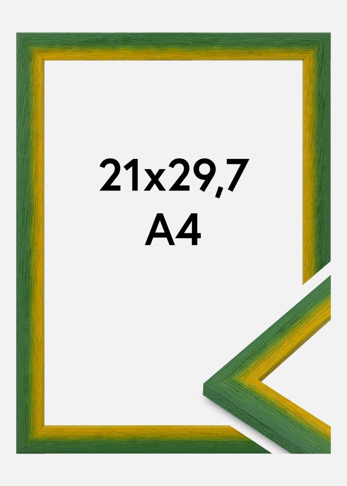 Tämä 21x29,7 cm (A4) kokoinen Kehys on täydellinen yhdistelmä modernia muotoilua ja luonnollista kauneutta. Vihreä väri ja kullan kellertävät sävyt korostavat puun luonnollista rakennetta tyylikkäästi. Kapea profiili, jossa on 23 mm leveä Kehyslista ja 13 mm syvyys, luo selkeän ja pelkistetyn ilmeen, joka antaa kuvasi olla keskiössä.