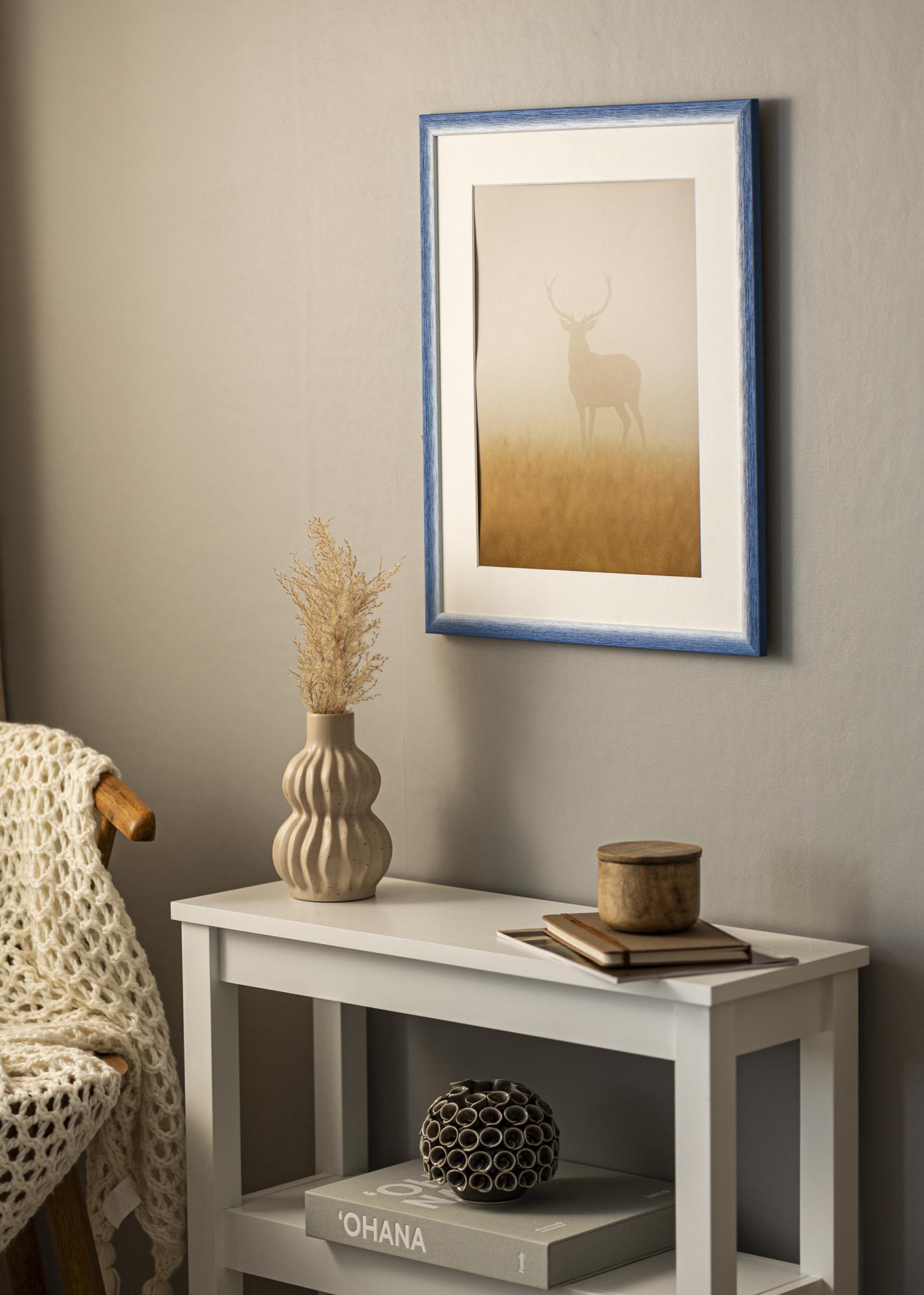 Kehyksessä on selkeä puun rakenne pystysuorine syineen, mikä antaa luonnollisen ja kosketeltavan tunteen. Eri sävyjen pehmeä siirtyminen luo käsinmaalatun, ainutlaatuisen ilmeen, joka tekee jokaisesta kehyksestä erityisen. Kapea profiili ja hillitty mattapinta vahvistavat sen modernia mutta samanaikaisesti rustiikkista luonnetta, tehden siitä erinomaisen valinnan kaikenlaisiin sisustuksiin.
